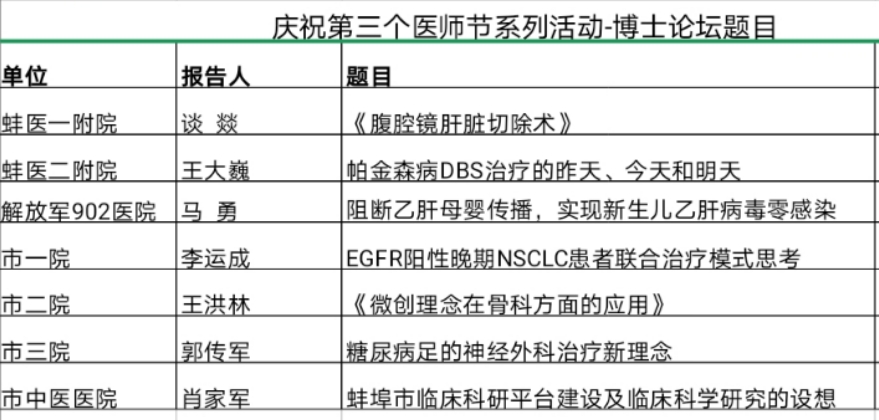 当天下午,市卫生健康委还举办了首届医疗卫生博士论坛,来自蚌医一附院、蚌医二附院、解放军902医院、市一院、市二院、市三院、市中医医院的7名博士结合各自专业作论坛报告,共同为蚌埠市卫生健康事业高质量发展献计献策。