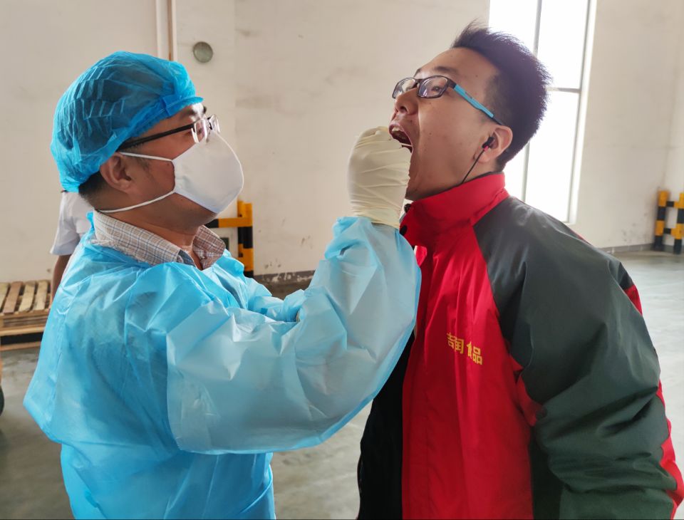 对从业人员现场取样。