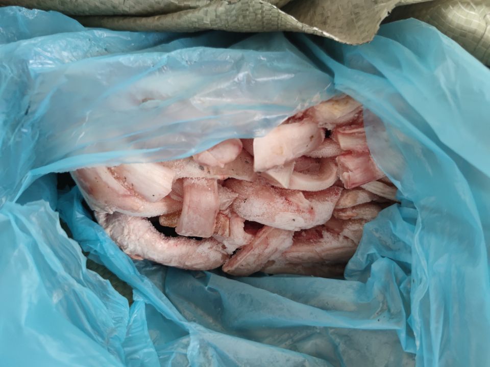 麻袋里的冷冻食品。
