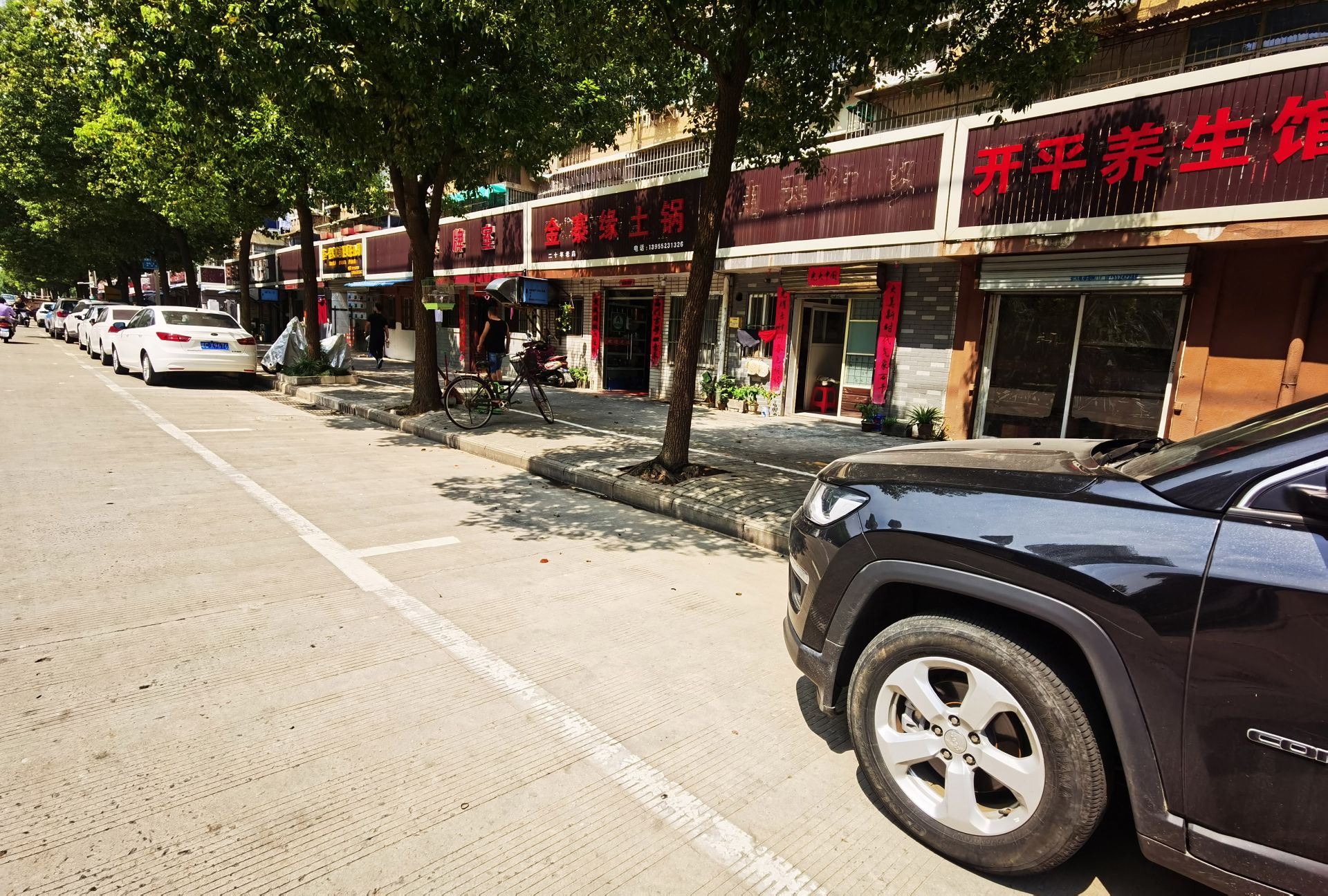 9月9日上午11时50分许,迎湖路(南湖路至宏业路段),这一排的饭店均正常营业,公用停车位上停放着车辆,虽个别空闲,但未见共享车辆等占用。