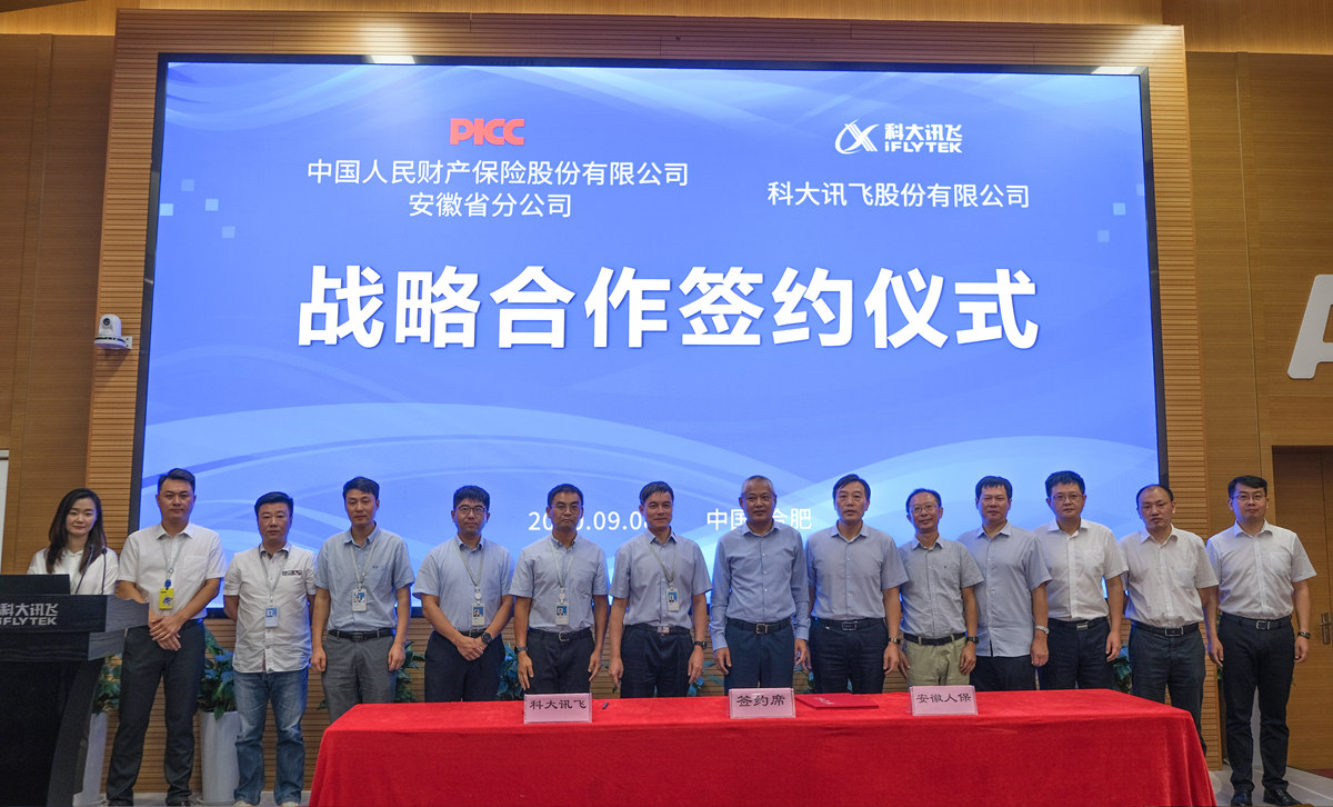 9月8日,中国人保财险安徽省分公司与科大讯飞股份有限公司在合肥科大讯飞总部签署战略合作协议。中国人保财险安徽省分公司党委书记、总经理董晓朗,党委委员、副总经理王学军以及科大讯飞股份有限公司执行总裁吴晓如、智能服务事业部总经理解飞等领导出席签约仪式。
