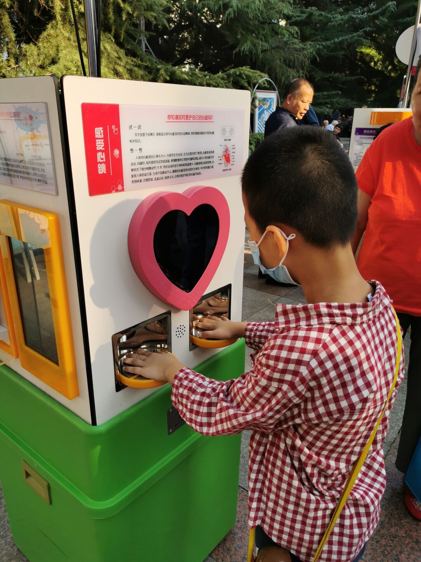图为互动环节,小学生体验科普展品。