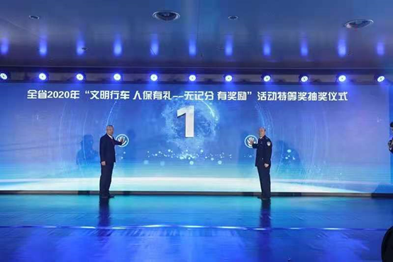 当天出席仪式的领导有安徽省政府副秘书长刘定明,安徽省公安厅交警总队总队长范厚本、中国人保财险安徽省分公司总经理董晓朗。安徽省公安厅交警总队总队长范厚本、中国人保财险安徽省分公司总经理董晓朗现场抽取了2020年全省“文明行车人保有礼——无记分,有奖励”活动特等奖2名(奖品为两辆别克汽车),同时现场还抽取了全省三、四季度一、二、三等奖共74名。领导们现场还向2020-2021年度“安徽省交通安全宣传大使”颁发了聘书。