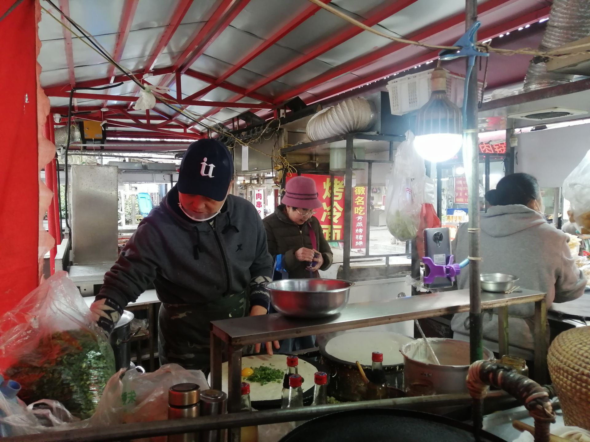 周廷学是篾匠街的小吃摊贩,从1997年便在街边从事煎饼果子生意,每天坚持早晚出摊两次。二十多年来,他和妻子坚守在路边做煎饼,用勤劳的双手谋得一条生路,也见证了篾匠街的几十年的变迁。
