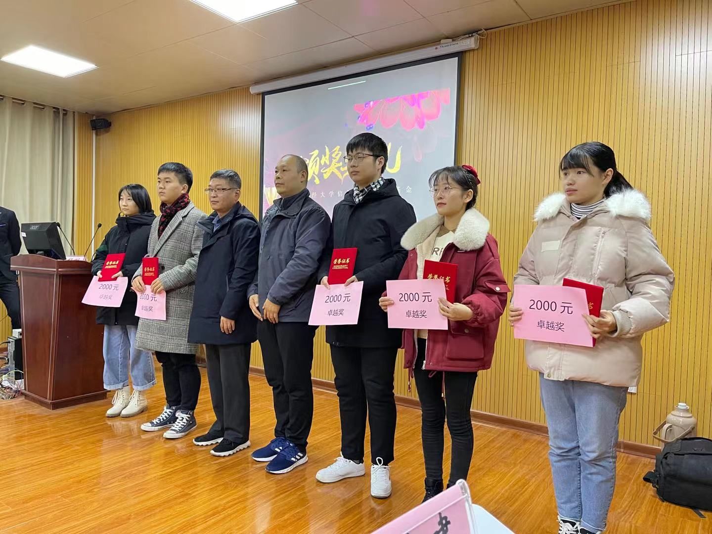 2020年,获得信管96励学基金的学生们在颁奖仪式上领奖。