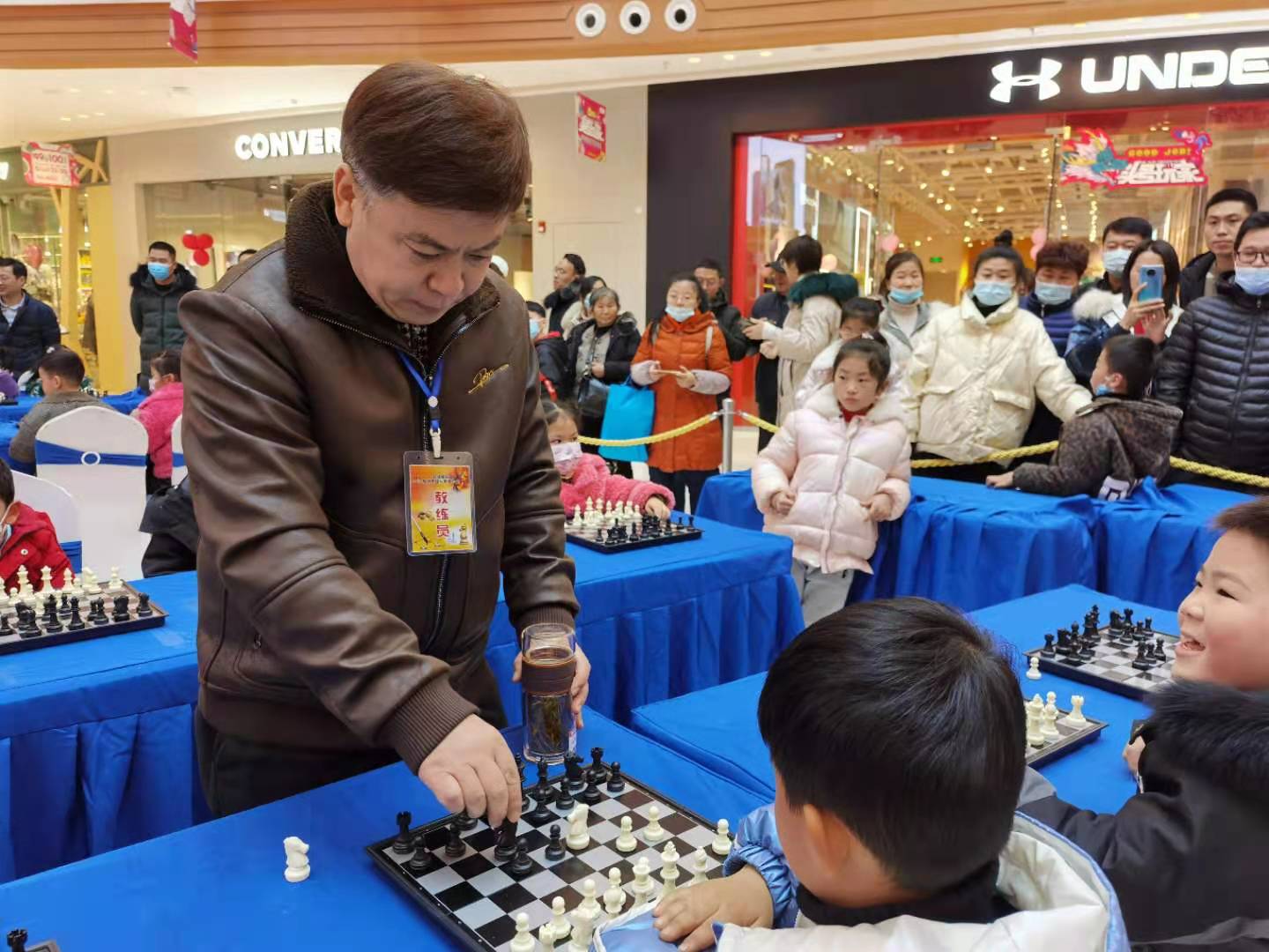 蚌埠新闻网讯(记者 刘晨 文/图)12月20日下午,由蚌埠报业传媒集团、蚌埠吾悦广场、蚌埠棋院、蚌埠市国际象棋协会主办的蚌埠市第二届“贺岁杯”国际象棋精英赛和大师车轮战在吾悦广场精彩上演。蚌埠棋院院长、蚌埠市国际象棋协会主席禹继洪率蚌埠棋院国家级裁判和棋协大师现场进行车轮战表演。吸引了众多市民和爱好者前来参与扣观战,感受国际象棋做为世界第一智力运动的魅力。