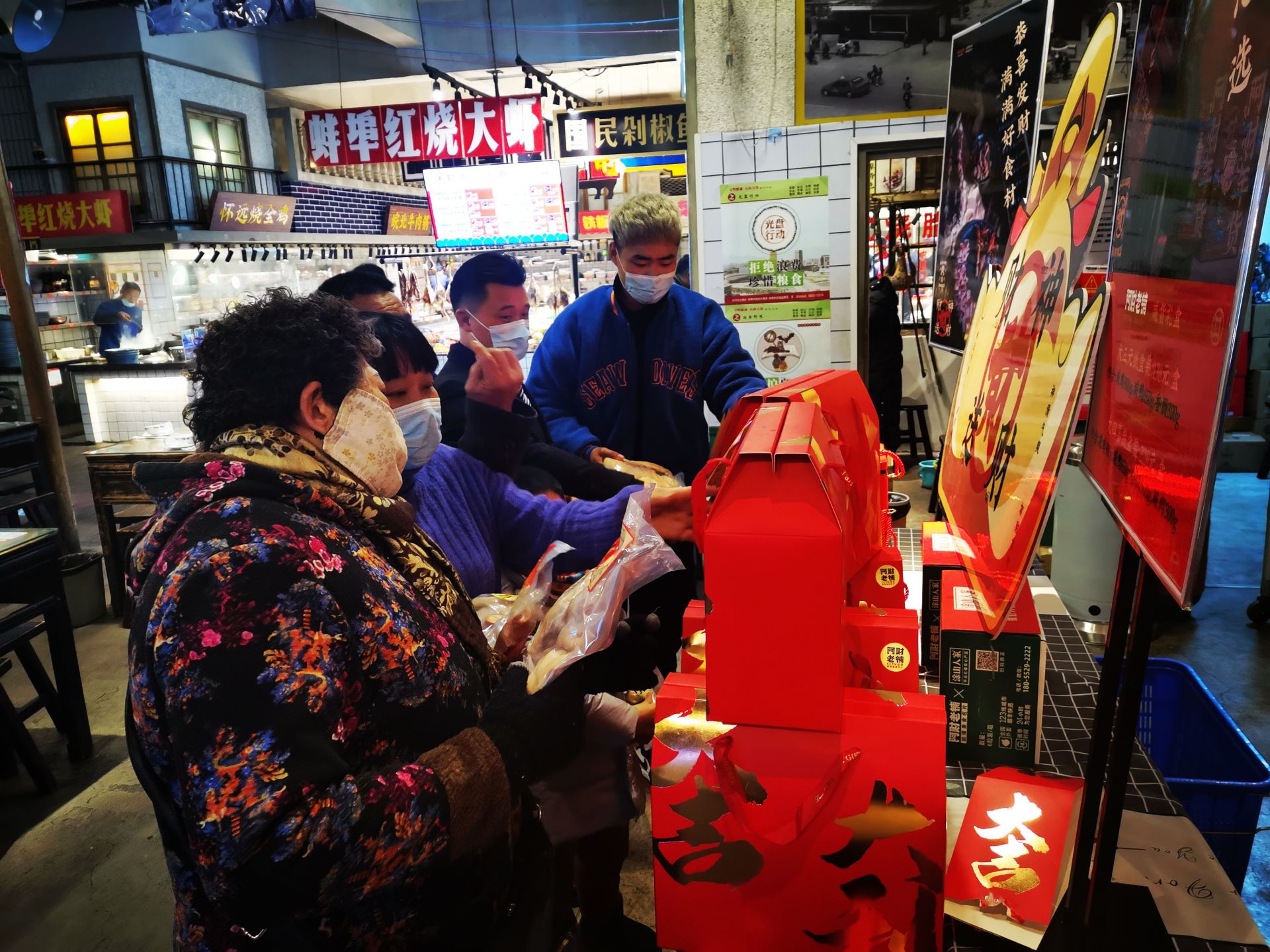 市民在一家饭店里挑选咸货礼盒。