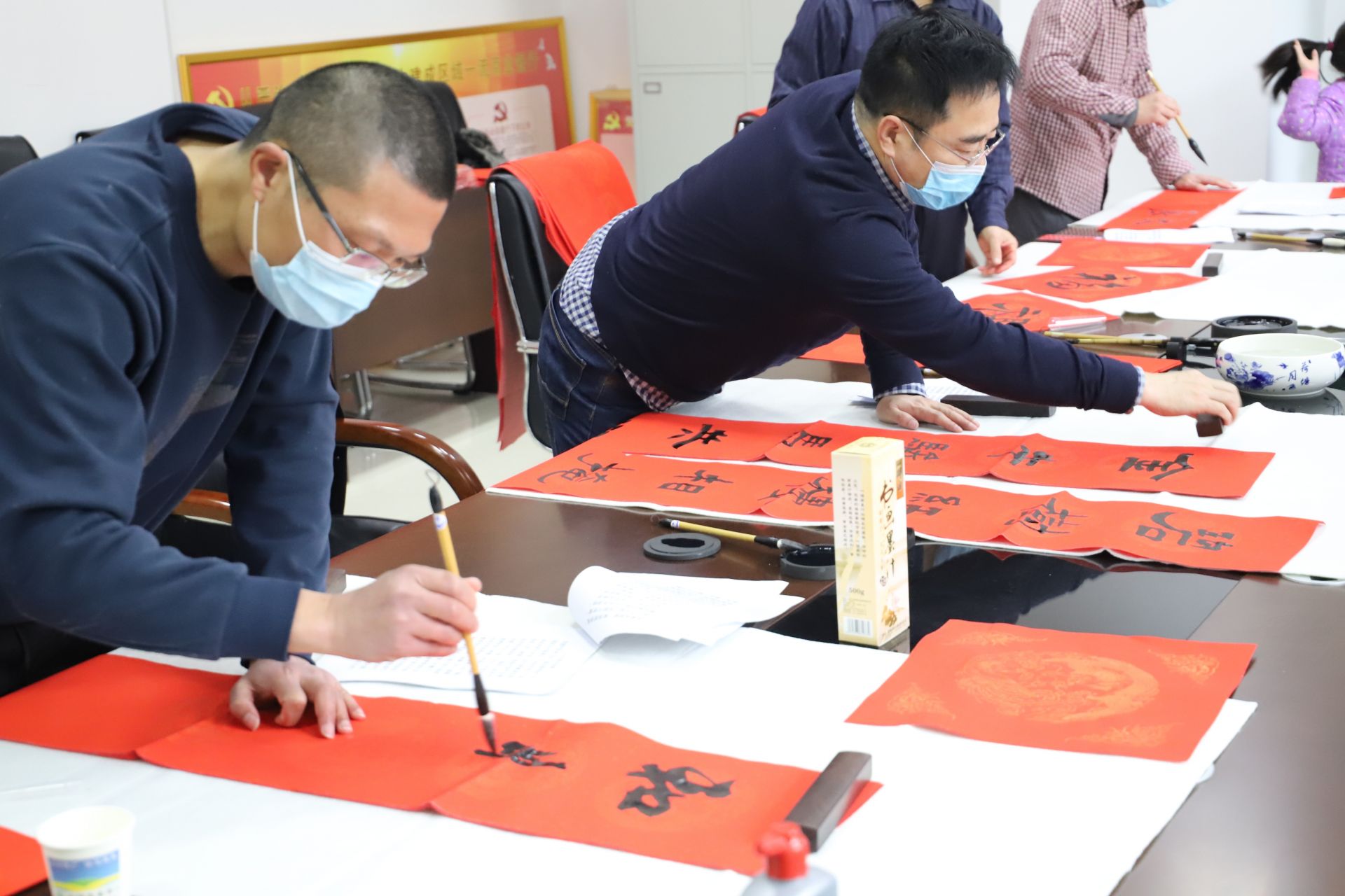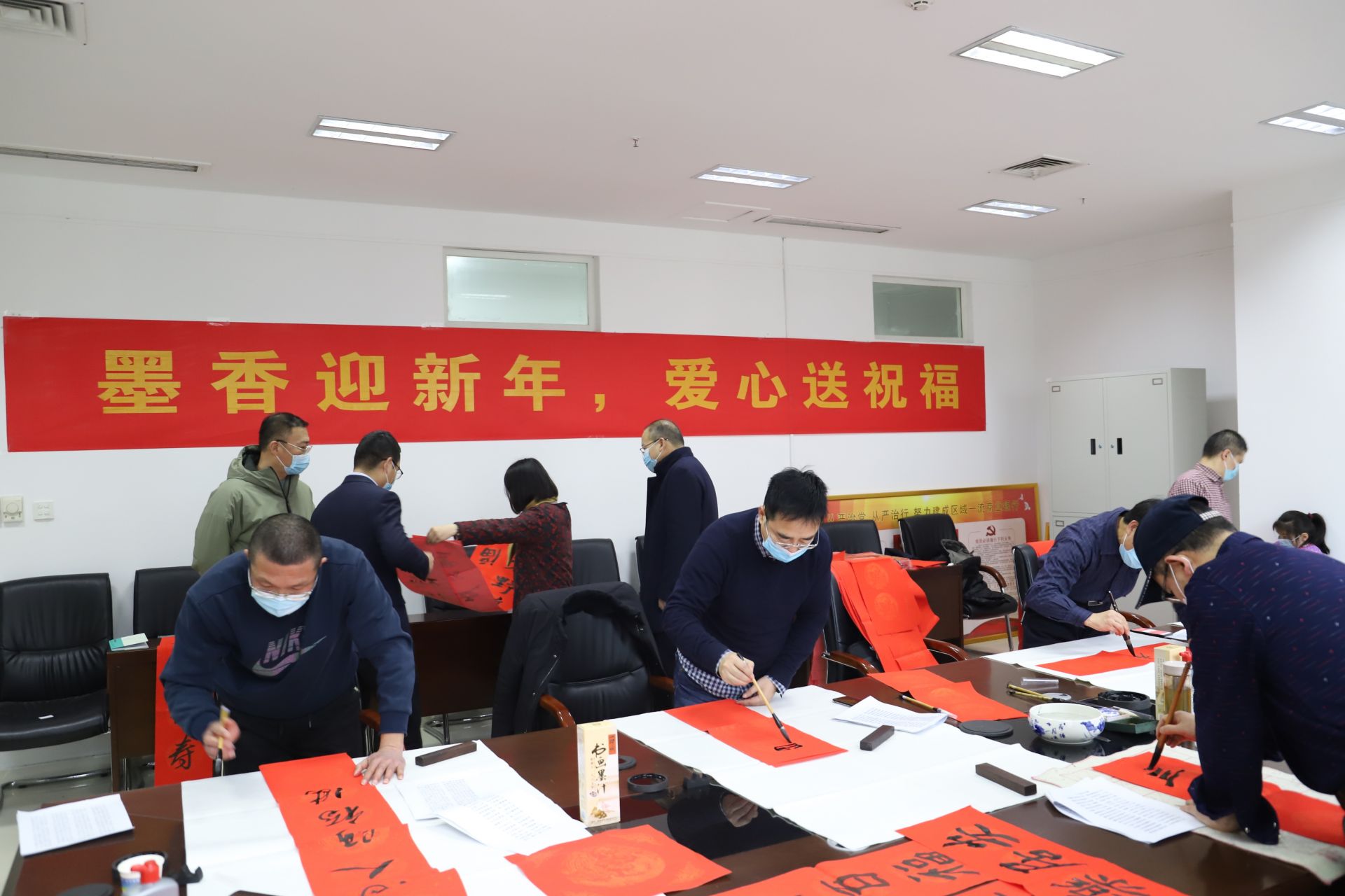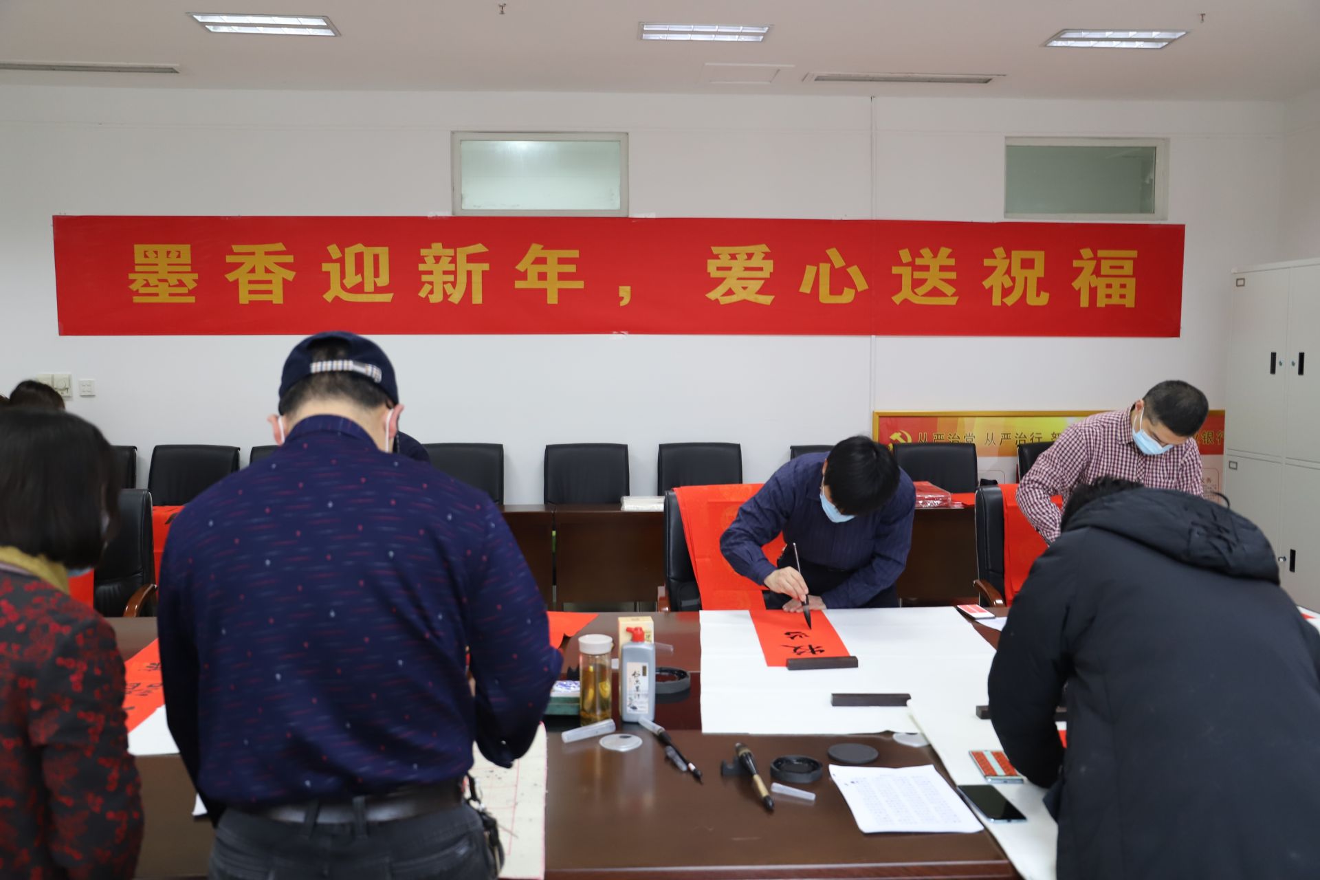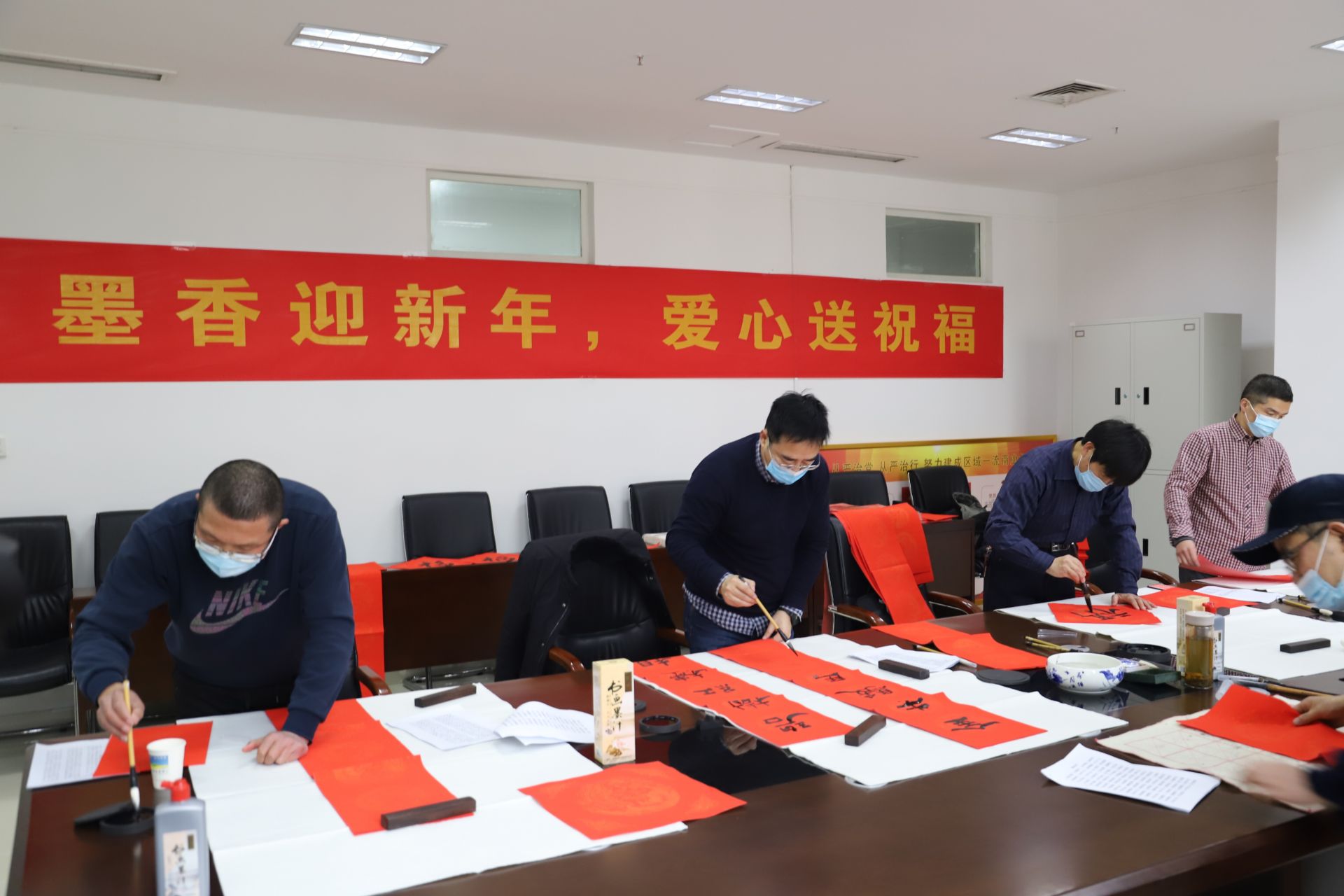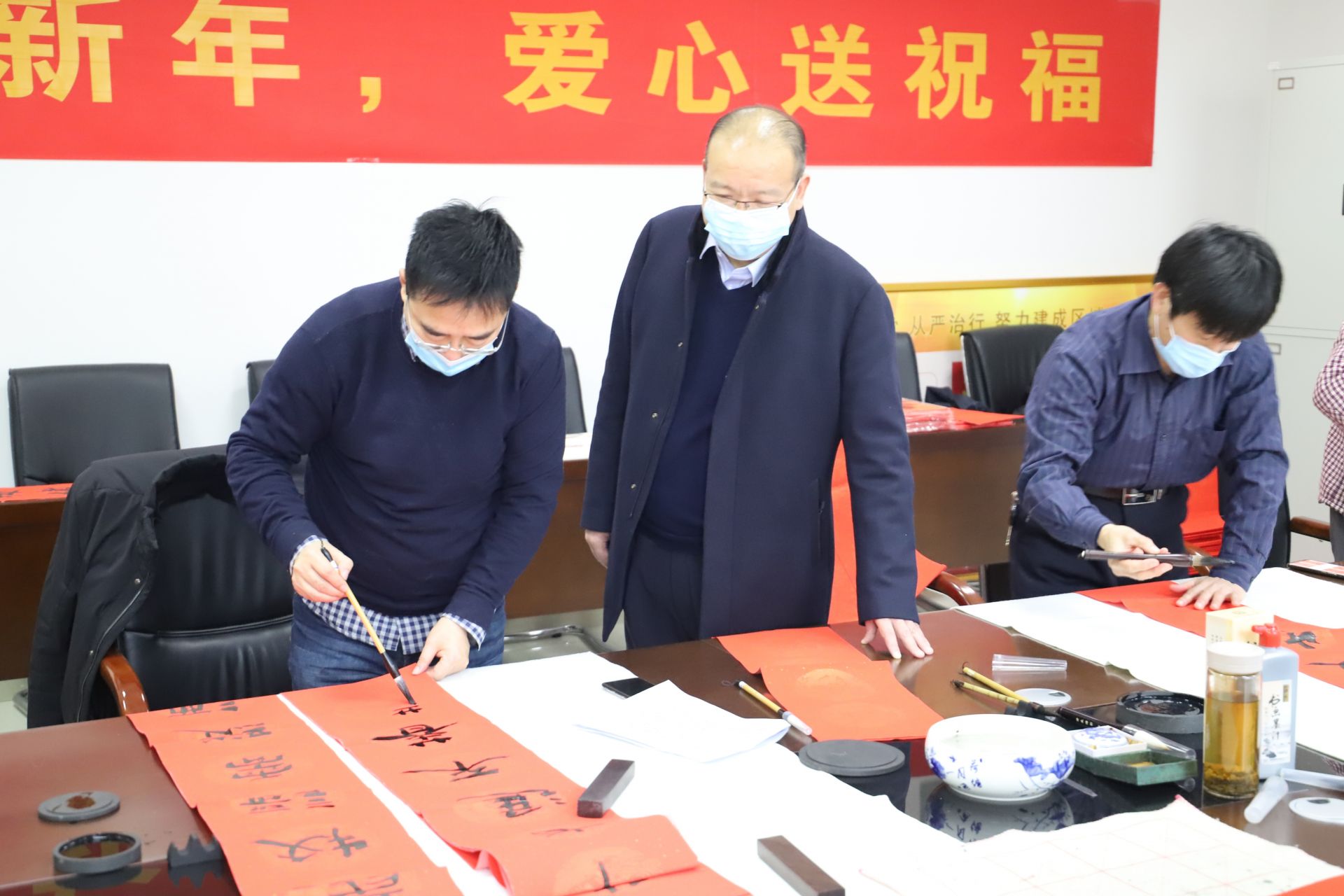 1月24日下午,市书法家协会部分书法家在中国农业银行蚌埠分行会议室挥毫泼墨,为脱贫户书写春联(中国农业银行蚌埠分行员工展示书法家为脱贫户书写的春联)。当日,该分行与市书法家协会联合举办写春联活动,此次活动所写春联将于近期送到脱贫户手中。