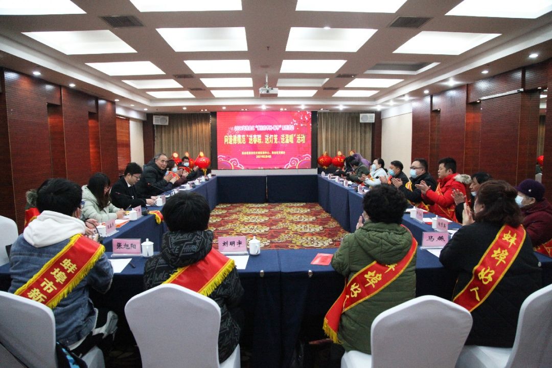 在新春佳节即将来临之际,为充分体现党和政府对道德模范及身边好人的关心关爱,进一步弘扬“好人有好报”“德者有得”新时代风尚,传递“真善美”,营造崇德向善的良好氛围,近日,蚌埠市禹会区举行2021年“我们的节日·春节”系列活动之向道德模范“送春联、送灯笼、送温暖”及座谈活动。