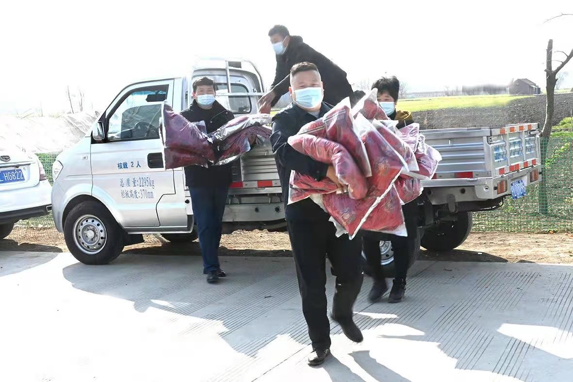 周道松把为老人定制的新衣运至村里。