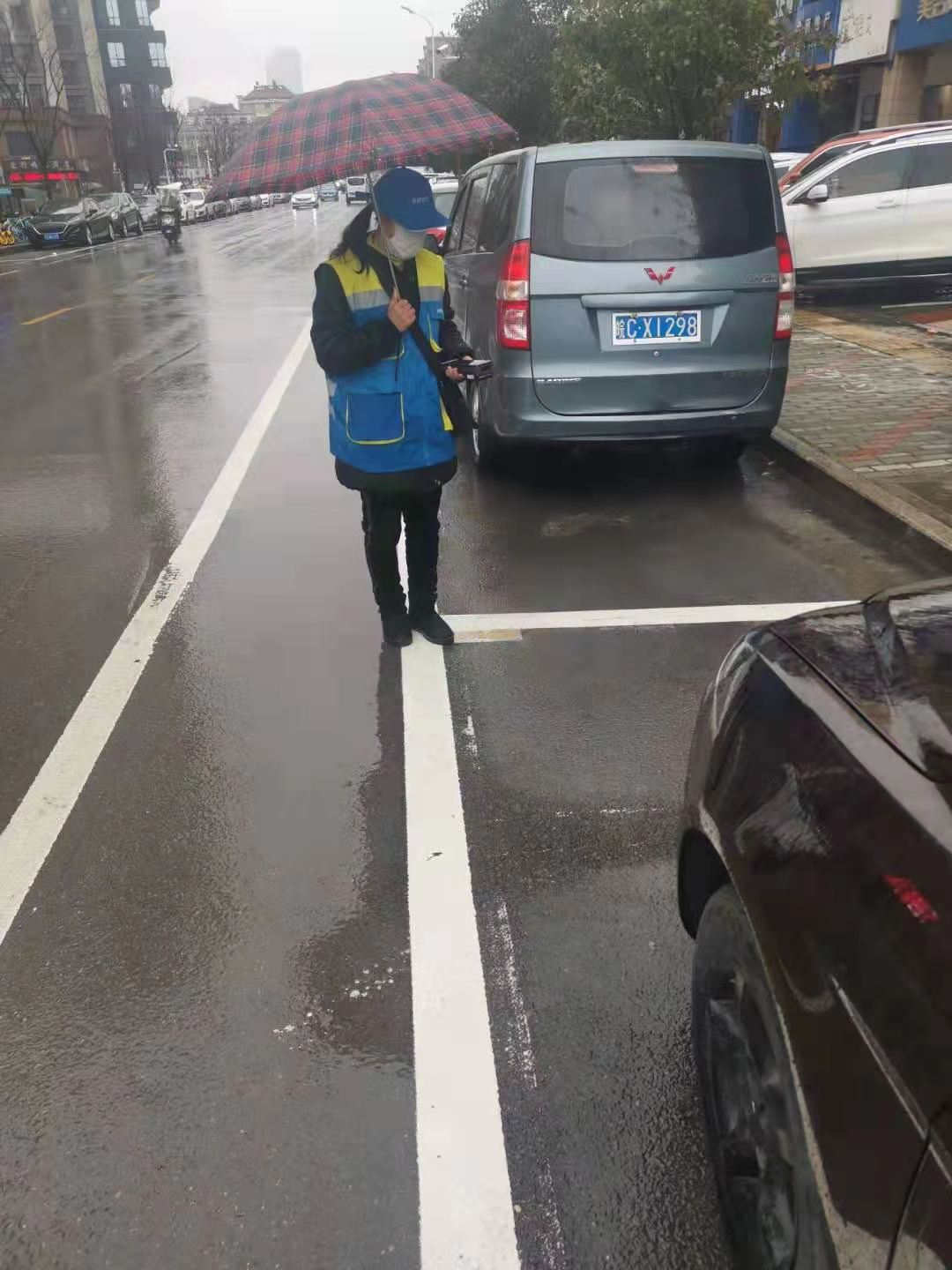 车辆停下后,泊位收费管理员扫描车牌号打出单据。