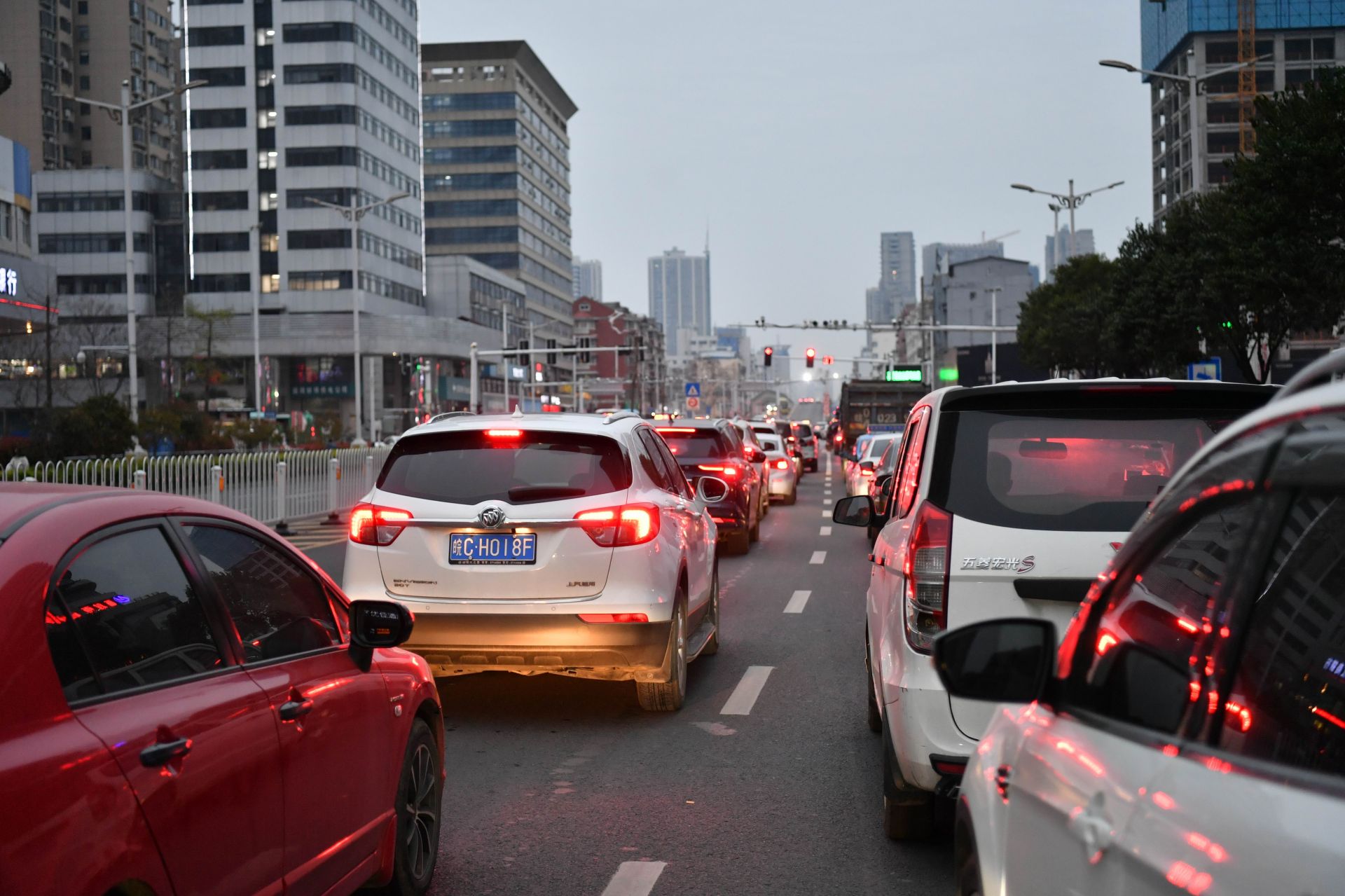 3月18日下午6时许,胜利路,下班出行车辆增多,排起了长龙