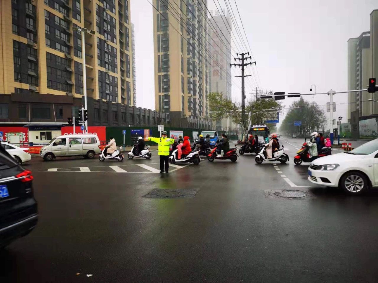 4月3日,清明小长假第一天,返乡祭祖、外出踏青人员增多,又迎来降雨天气,交警一大队提前部署、精心组织,为广大群众出行保驾护航,在辖区内重点路段路口加派执勤警力,及时指挥疏导,确保大家安全出行。 蚌埠日报全媒体记者 何沛