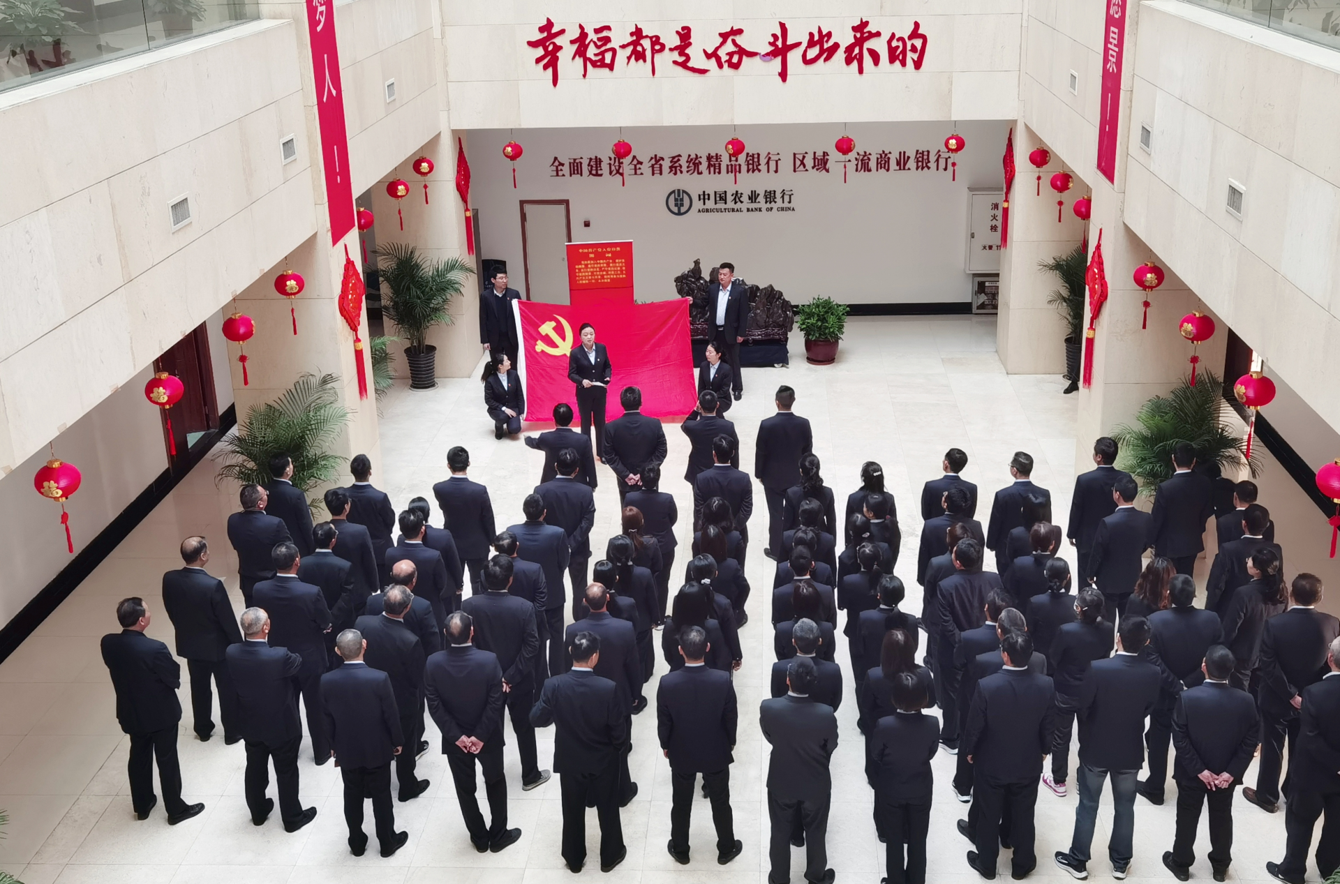 4月29日,蚌埠农行在全辖组织开展“重温誓词学党史 亮明身份做表率”活动,全行上下同频共振,全体党员面对鲜红的党旗庄严宣誓,重温入党誓词,学习《红船精神》。广大党员干部通过真学补钙,汲取奋进力量,立足岗位把党史蕴含的经验和智慧转化成工作中攻坚克难、勇于担当、干事创业的务实举措,第一时间走进企业、走进社区、走进乡村,为人民服务、为老百姓办实事,以生动的实践成果为建党100周年献礼。