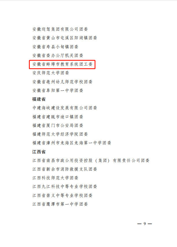 蚌埠市教育系统团工委荣获“全国五四红旗团委(团工委)”称号