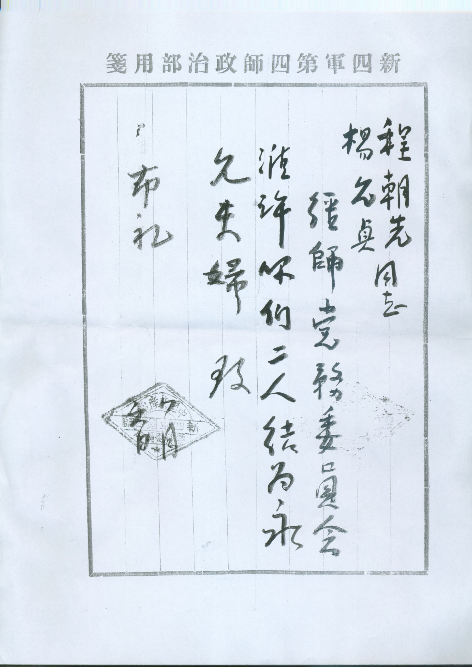 1944年8月,父亲程朝先与母亲杨允贞结为伴侣。促成父亲与母亲婚姻的红娘就是彭雪枫和张震将军。