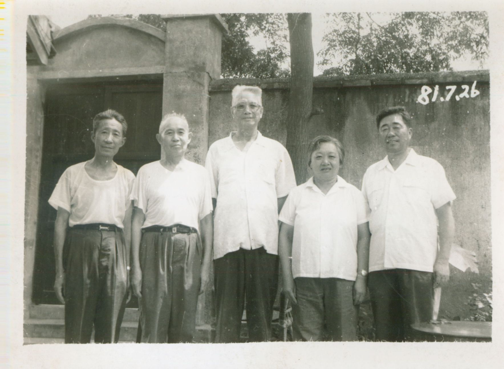 张震1981年来蚌看望程朝先时合影(左起姚家录、程朝先、张震、杨允贞、王静敏)。