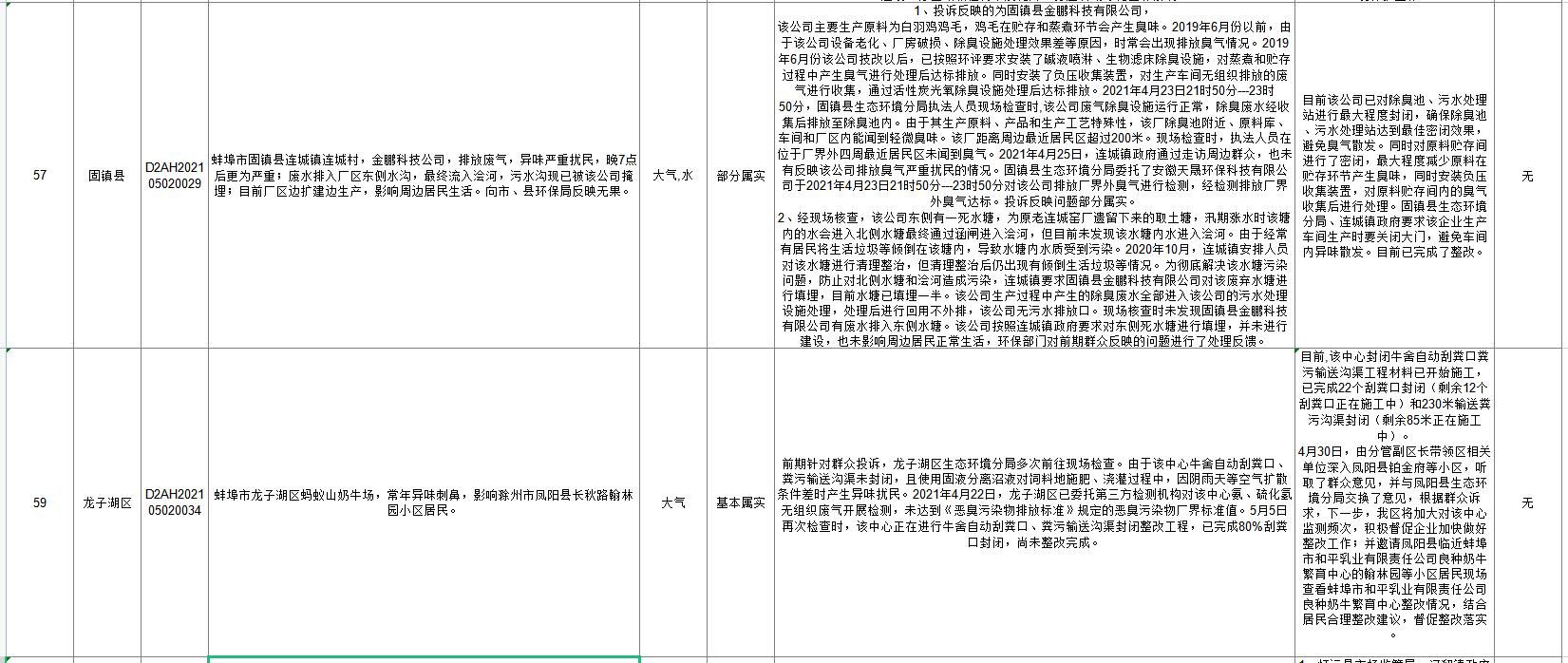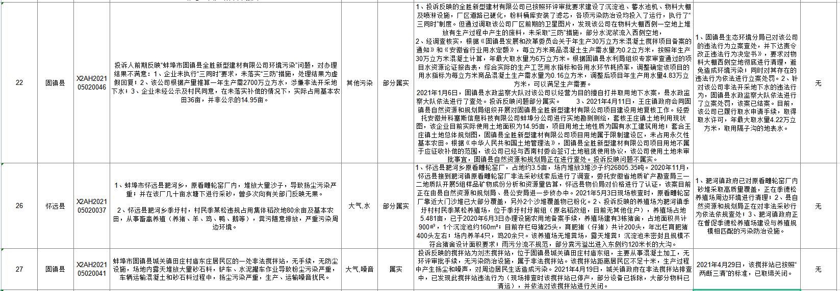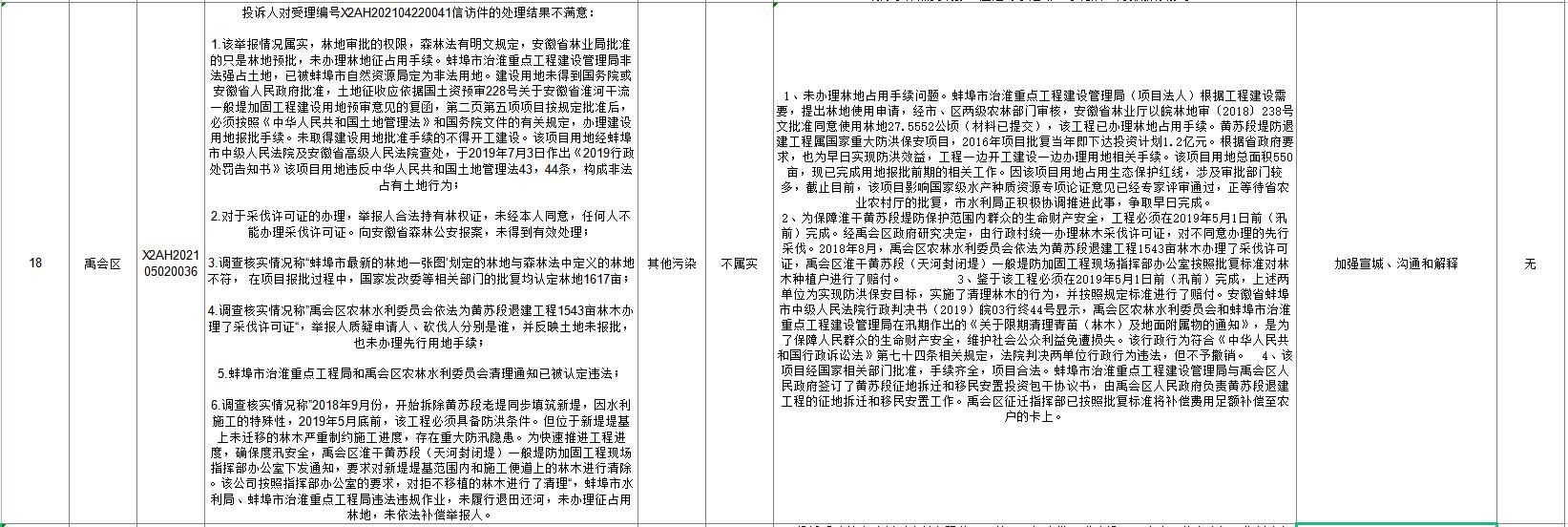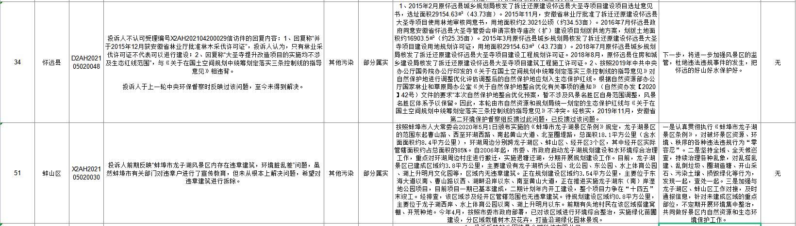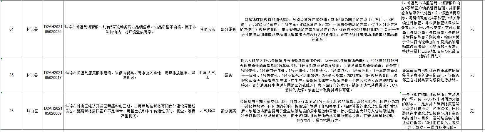 蚌埠市落实中央生态环保督察信访举报边督边改公开情况一览表(第二十六批)