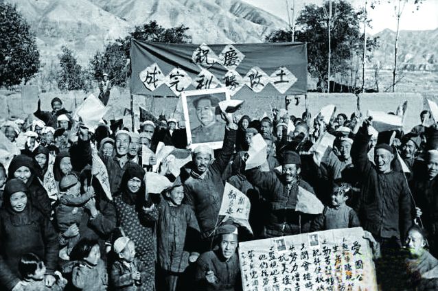 农民群众庆祝土地改革胜利完成。