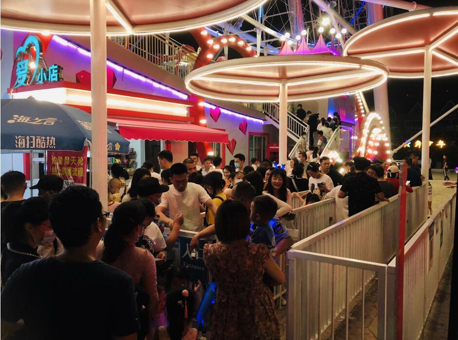 除了篝火晚会,摩天轮许愿打卡,现场也是排起了长队,除了小朋友们,很多大朋友们也被点燃了童心,纷纷许愿自拍,分享到朋友圈,悄悄告诉你,听说在摩天轮上最高点许愿,愿望更容易实现呢!