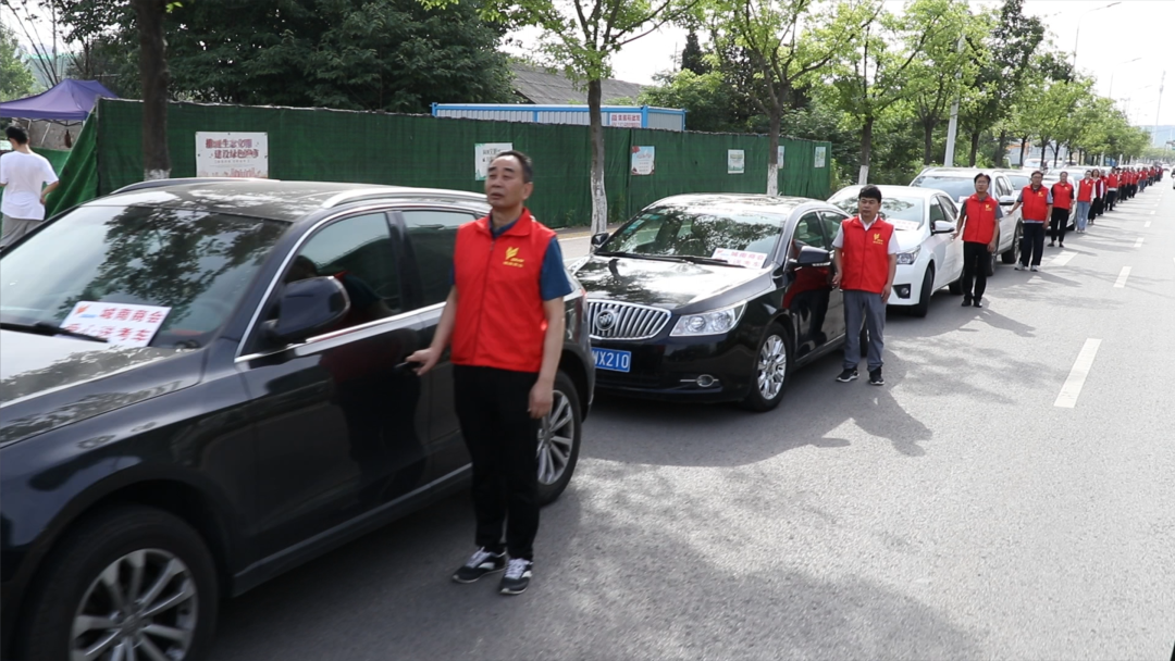 早上6时,商会志愿者们早已在高考考点门口搭建好休息点,服务台上备有矿泉水、毛巾、绿豆汤、藿香正气水等物品,免费提供给考生和家长饮用,并提供遮阳伞和凳子,以供在外等待的考生家长休息。商会还组建了“爱心送考车队”,共出动汽车30余辆,全力应对高考过程中可能出现的各种突发状况服务高考。