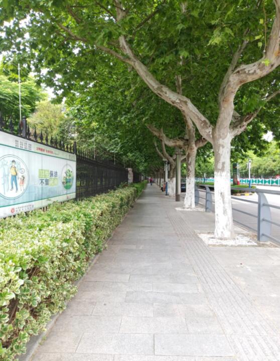 围墙内景观和围墙外城市行道树相呼应。