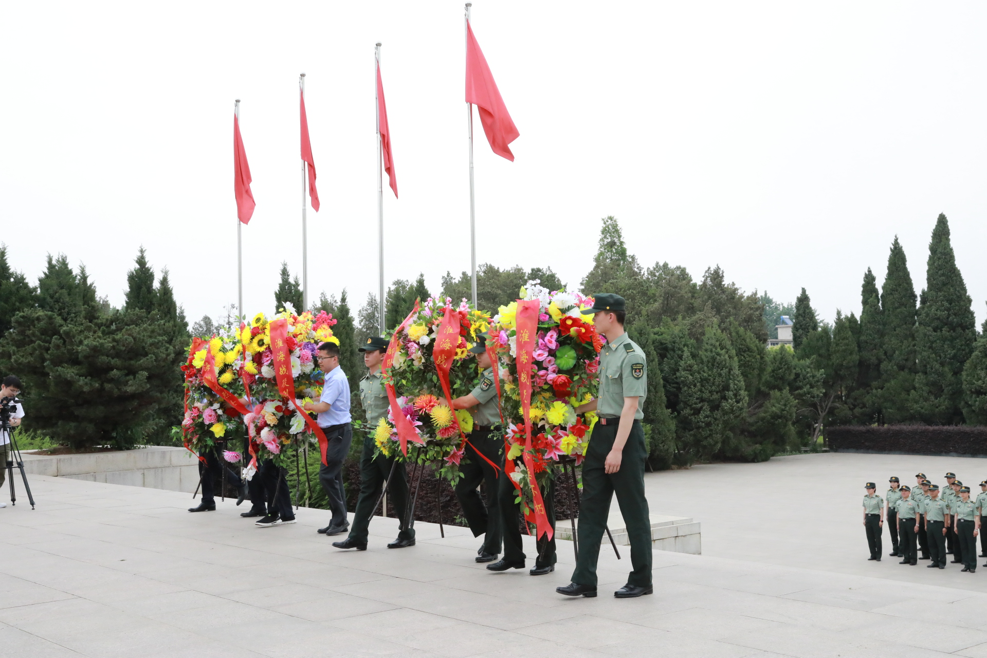 双方党员同志着正装列队来到淮海战役烈士纪念碑前,静静肃立。随后,双方代表共同向革命先烈敬献花篮,联勤保障部队第九〇二医院政治委员曹海峰、政治工作处主任夏强,农行蚌埠分行王磊行长、汤坤副行长缓步上前,仔细整理花篮缎带。接着所有党员同志共同向革命烈士深深三鞠躬,以此缅怀革命先烈的丰功伟绩,寄托对革命先烈的无限哀思。仪式结束后,双方所有党员同志共同重温了入党誓词,并绕行瞻仰了烈士纪念碑,参观烈士陵园纪念馆。