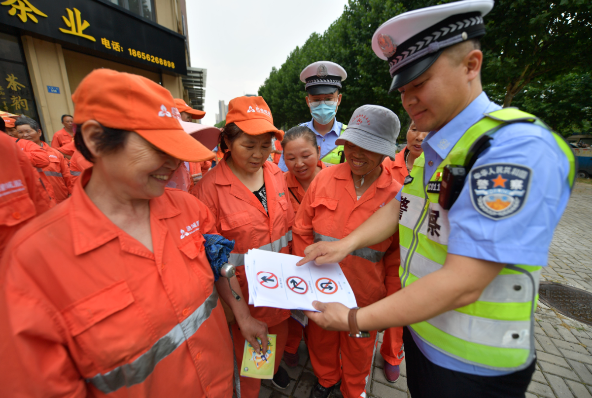 6月12日下午,交警三大队民警来到启迪数字环卫蚌埠禹会项目部开展交通安全教育活动,引导环卫工人自觉遵守交通安全法律法规,提高广大环卫工人的安全出行理念,要求环卫工人在工作中要严格遵守安全生产规章制度,驾乘摩托车、电动车一律佩戴头盔,严禁酒后上岗作业,严禁闯红灯、横穿马路,形成人人讲安全的良好氛围。蚌埠日报全媒体记者 陈昂 通讯员 宋玉