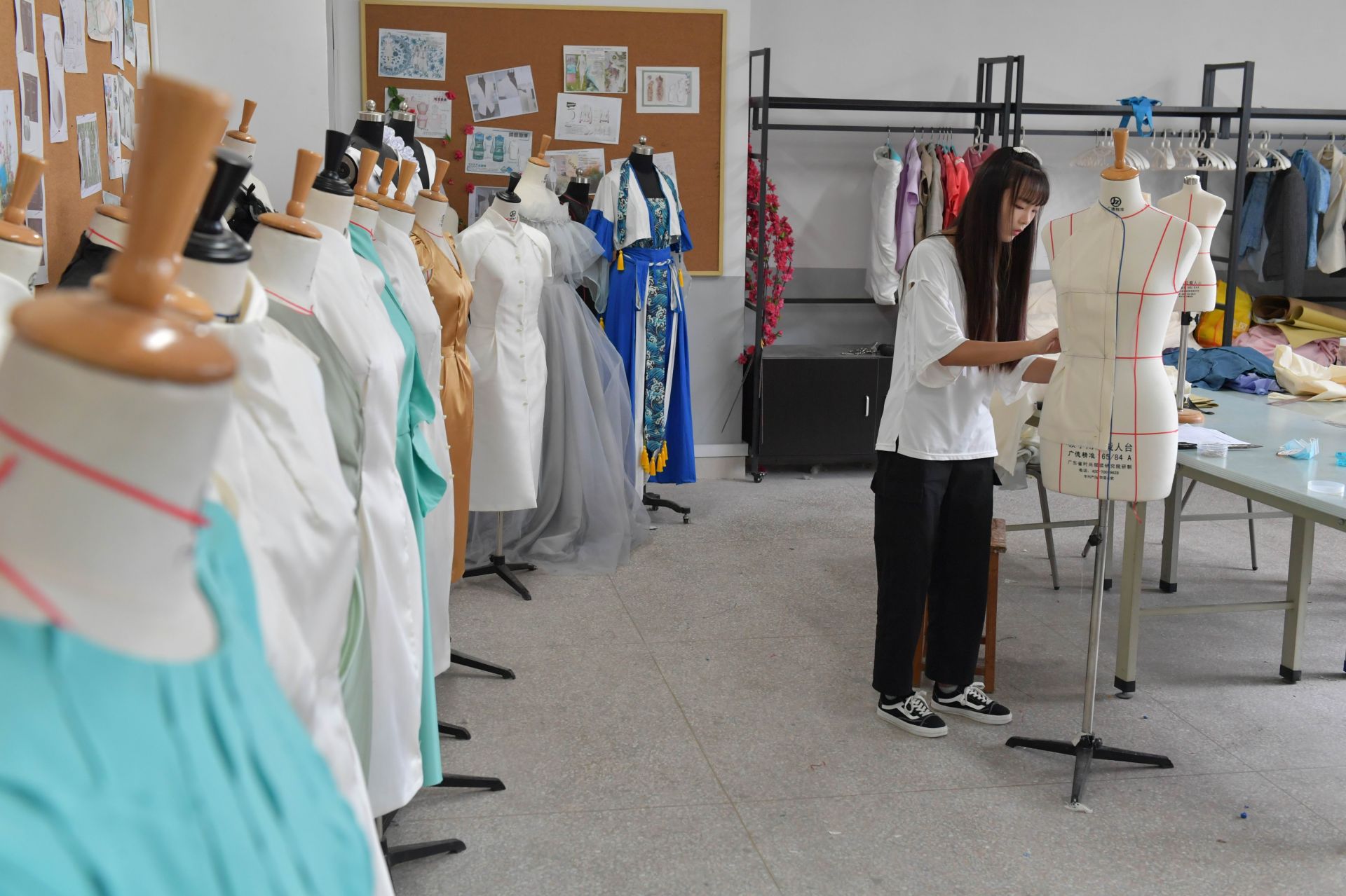 服装设计专业学生正在进行创作