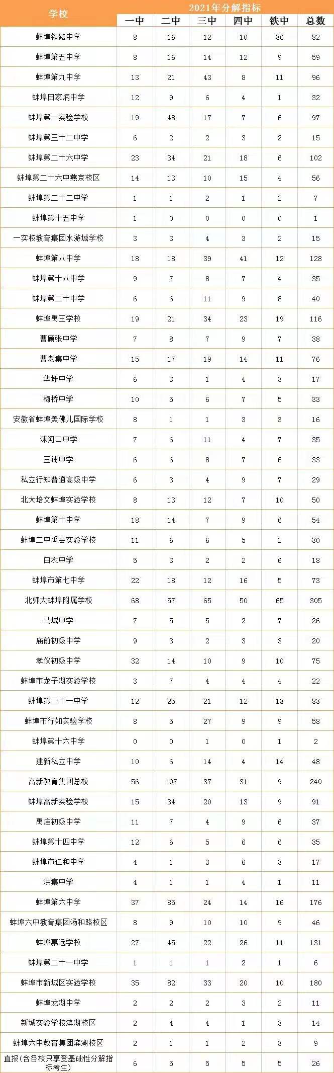 蚌埠公布2021年市区省级示范高中分解指标