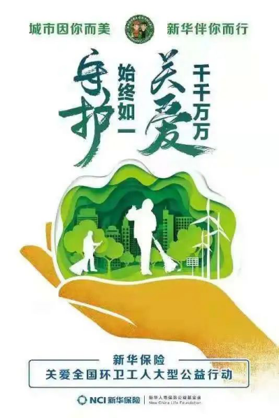 2016年,新华保险发起设立的 “新华人寿保险公益基金会”正式成立。2017年8月下旬,新华保险关爱全国环卫工人大型公益行动正式启动,该项目是业内首次实施的覆盖全国性的关爱环卫工人大型公益行动。