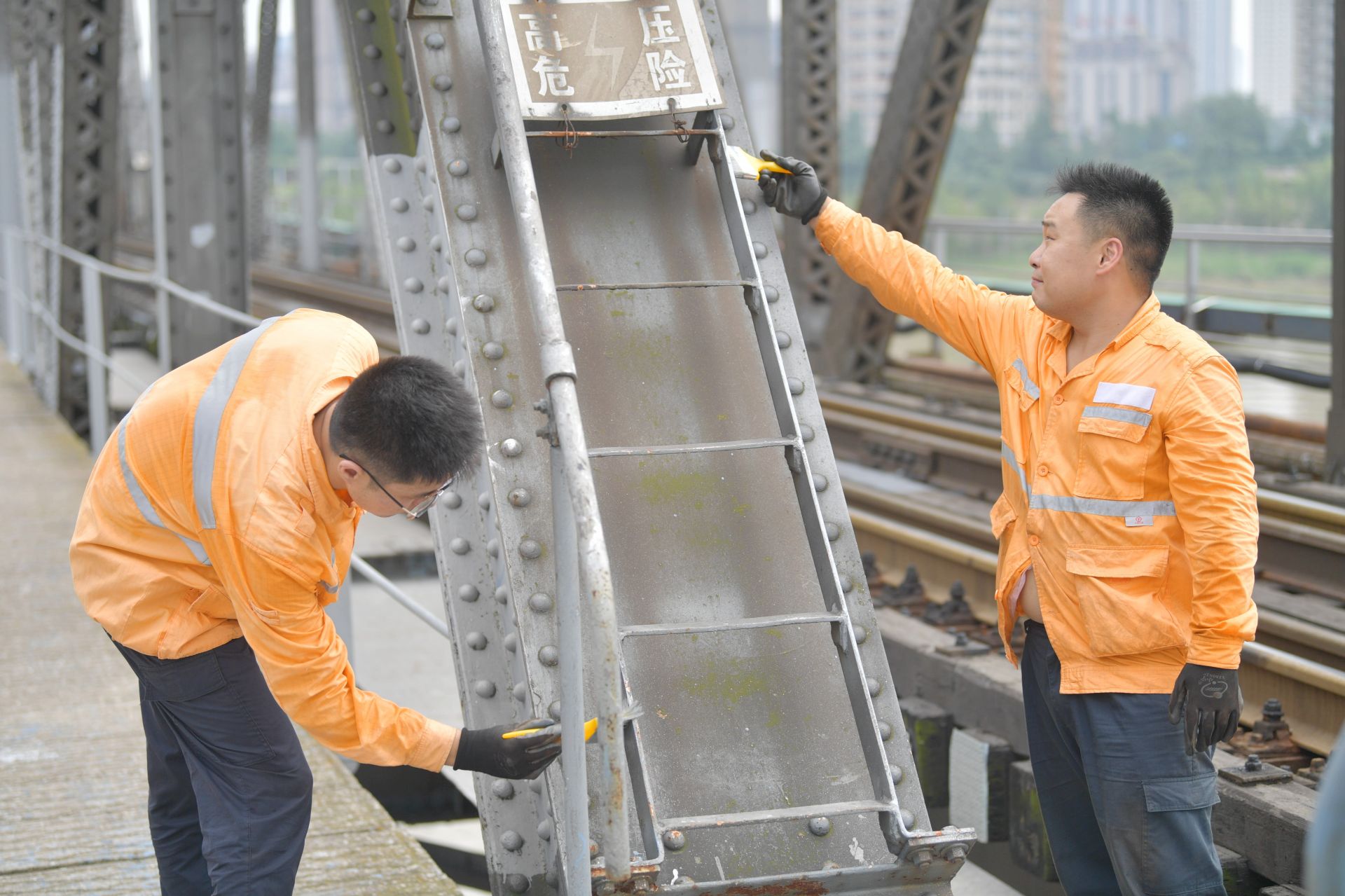 在作业现场,桥隧工们细心保养、呵护每一处设备。有的手持检查锤,有的涂刷防锈漆,他们时而俯下身子,时而弯腰半跪,小心翼翼地敲击每一处螺栓,认真细致地涂刷每根枕木。