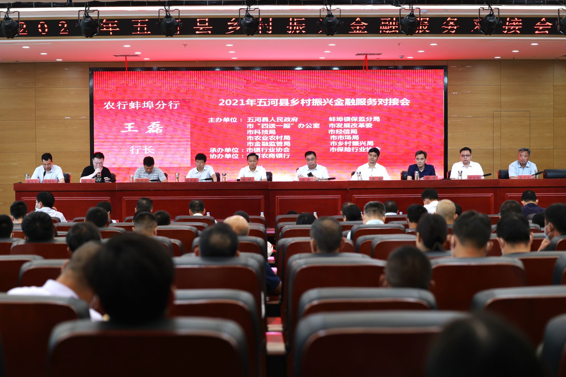 为深入贯彻习近平总书记“推进城乡区域协调发展,全面实施乡村振兴战略”的重要讲话精神,全面落实银保监会、安徽银保监局工作部署,以及黄晓武书记在全市巩固脱贫攻坚成果同乡村振兴有效衔接推进会上的讲话要求,9月3日上午,蚌埠银保监分局联合市发改委、市科技局、市农业农村局、乡村振兴局、市市场监管局、市地方金融监管局、“四送一服办”等职能部门,与五河县人民政府共同举办五河县乡村振兴金融服务对接会。