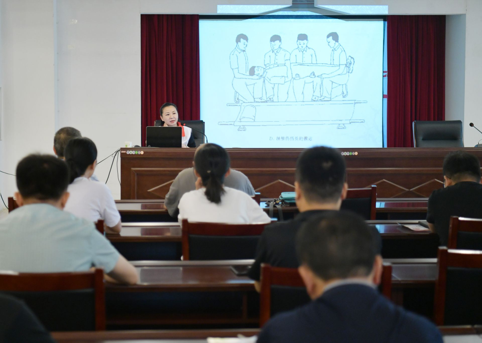红十字培训师徐翠为蚌埠日报社员工讲解急救理论知识。 刘晨 摄