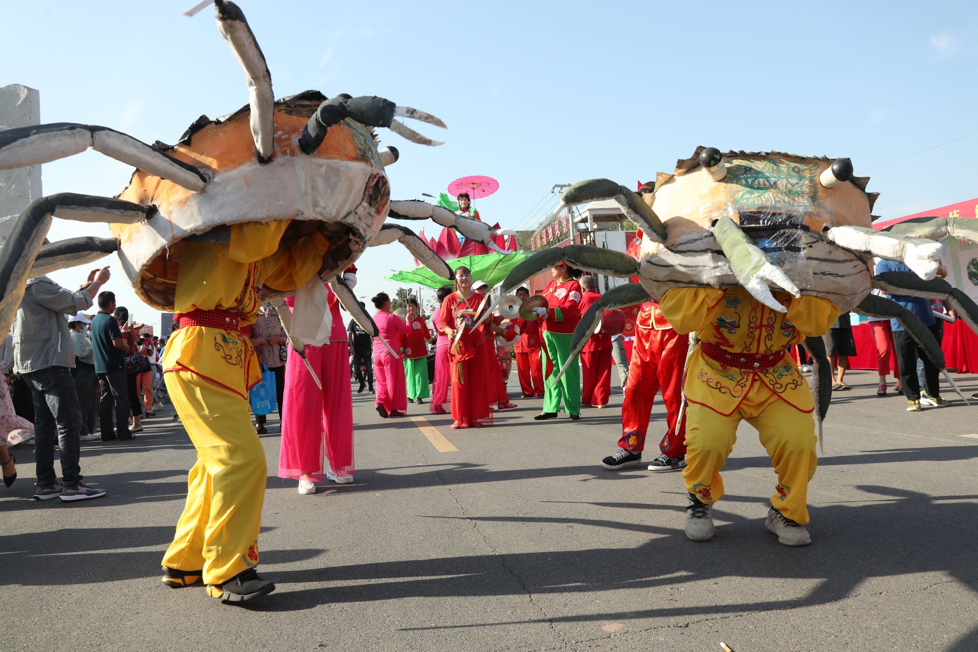 9月23日,五河举办中国农民丰收节暨第四届五河螃蟹节,渔民跳起螃蟹舞。