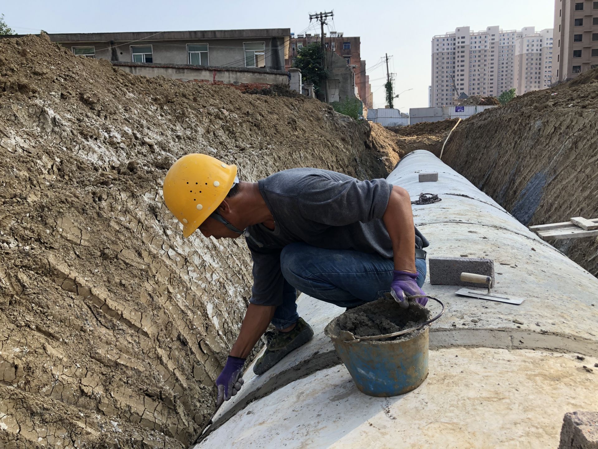 踏着晃悠悠的简易木桥,记者在雨污水管道抹缝施工现场见到了李文松。这个52岁的汉子,一手拎着装满水泥砂浆的灰桶,一手拿着瓦刀,铲起一坨水泥砂浆,填进两节管道的缝隙处,再用瓦刀压实、抹平,循环往复。