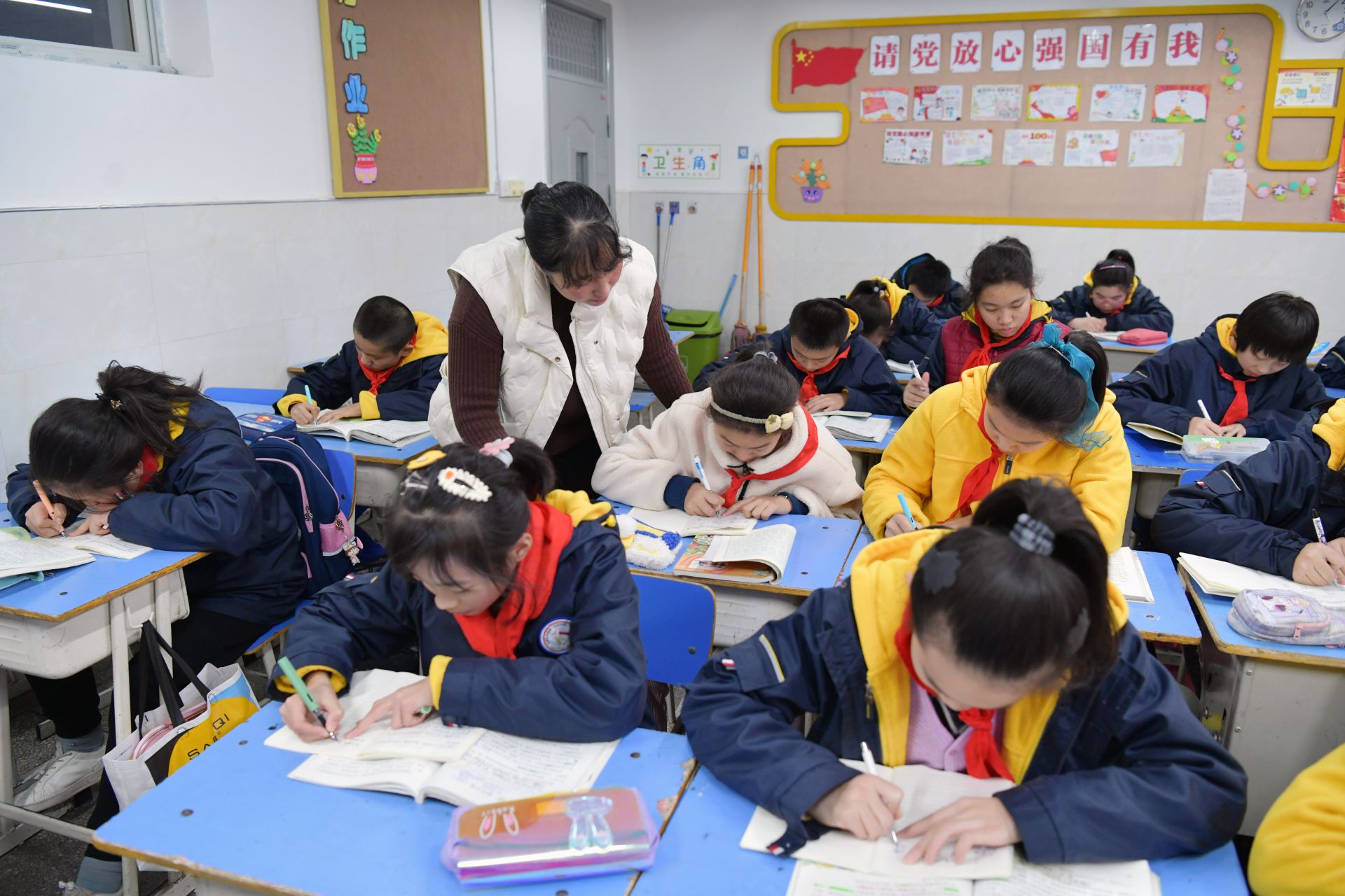 11月24日,一实校教室,老师在课后辅导学生写作业