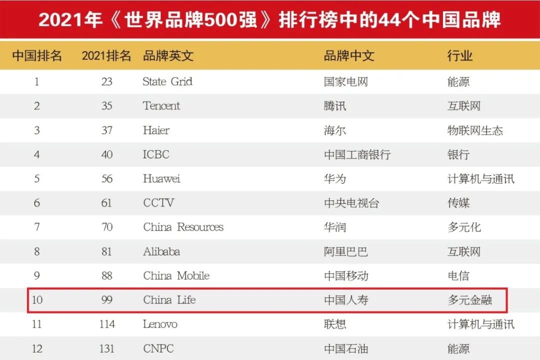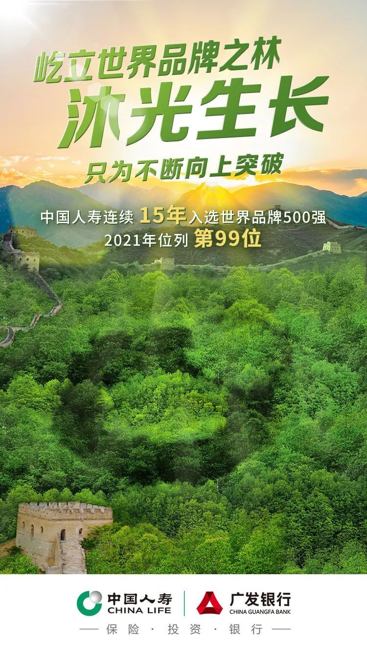 近日,由世界品牌实验室独家编制的2021年度(第十八届)《世界品牌500强》排行榜揭晓,中国人寿位列第99位,名次较去年上升28位。中国人寿已连续15年入选该榜单,并在今年首次迈进前100名,持续领跑中国金融保险企业。