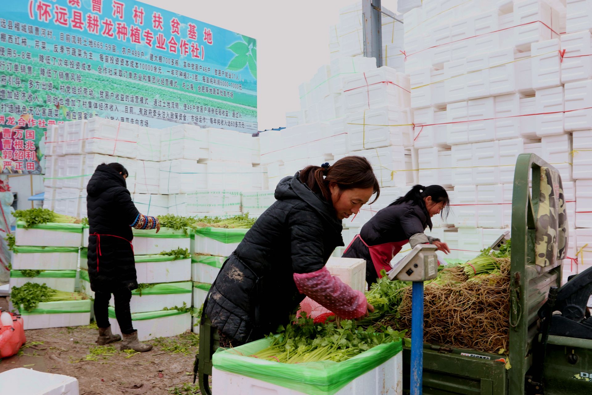 图为村民在曹河村耕龙种植专业合作社采收芹菜。 王青勇 摄