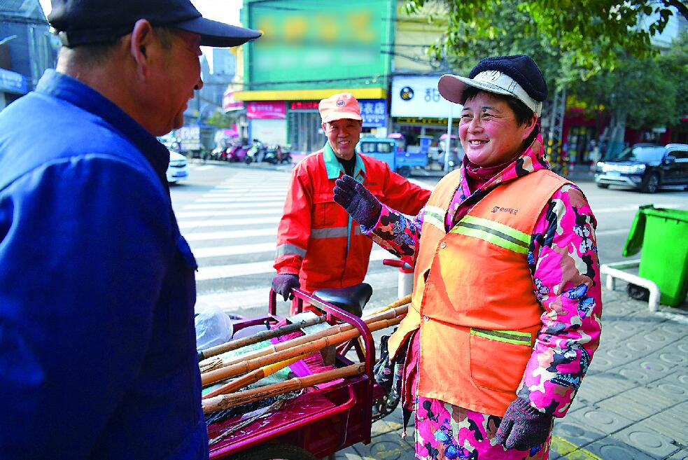 工作间隙,李存云把通过抓阄获得公租房的好消息,与同事分享。