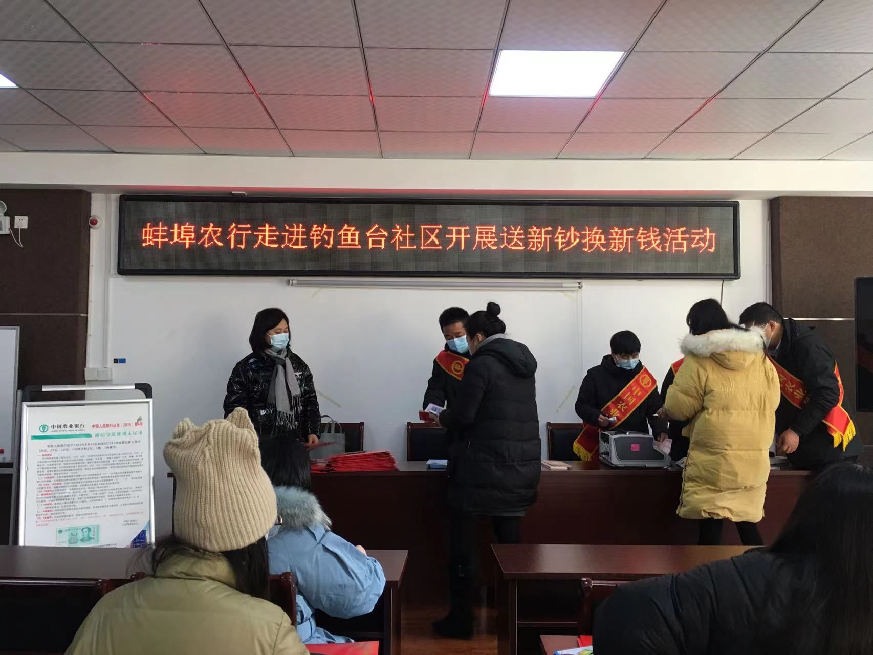 钓鱼台社区是与该行结对的全市首家“蚌埠市整治拒收现金网格化管理示范社区”,活动当天在钓鱼台社区现场兑换新钱近5万元,