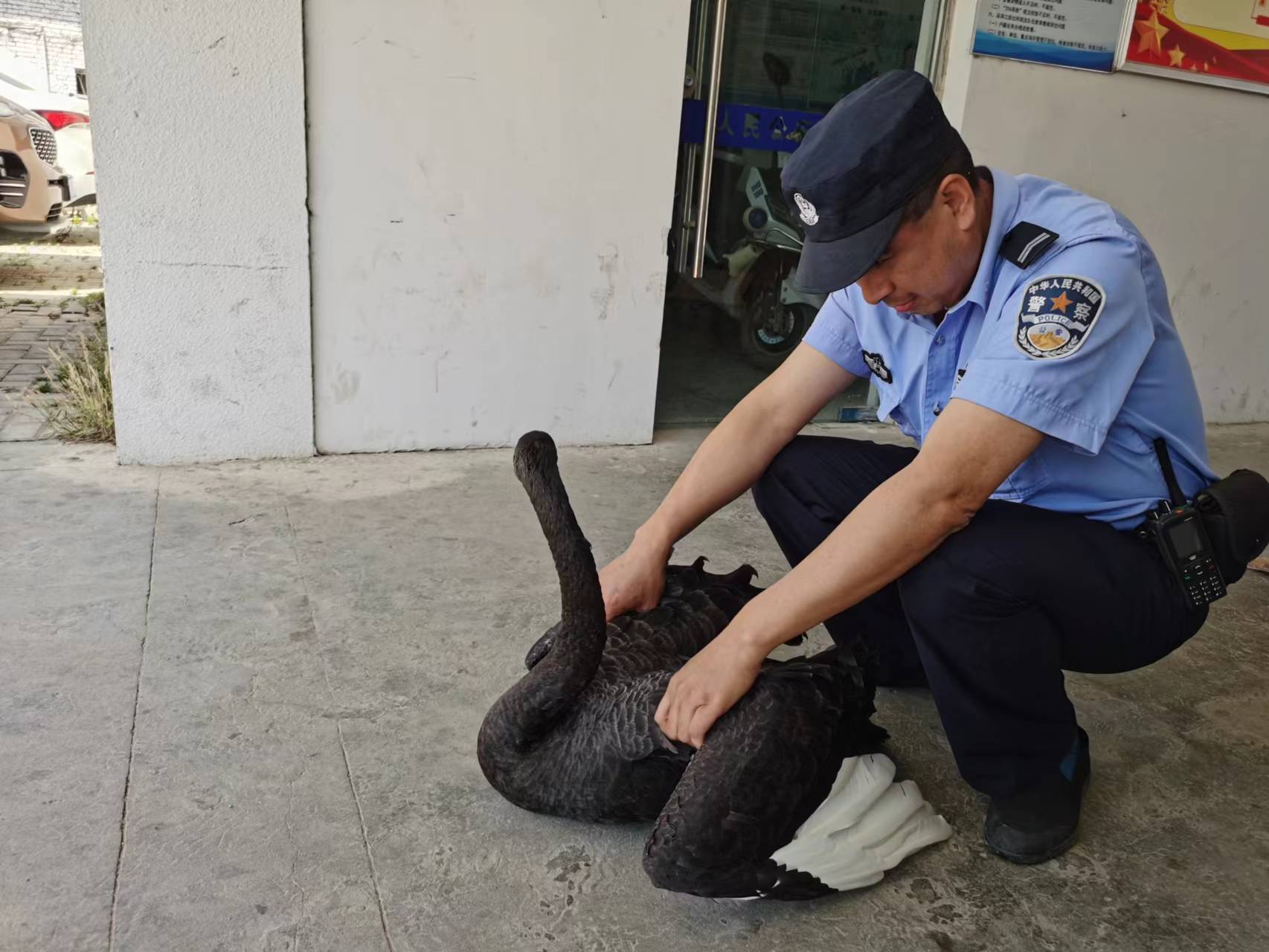 随后,民警把黑天鹅带回所内,为它准备了水和食物,待黑天鹅体能稍微恢复后,民警及时联系了蚌埠市野生动物保护管理站,经站内工作人员初步判断,该“大鹅”正是黑天鹅,属于外来物种,参照国际野生动物的保护规则,黑天鹅相当于我国的二级野生保护动物。目前工作人员已经将黑天鹅带回保护站,待进一步观察和救治。
