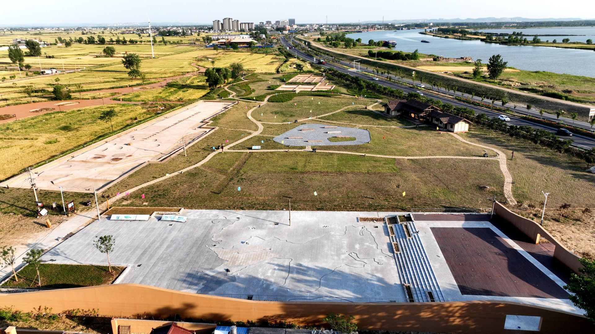 5月18日,蚌埠禹会村遗址国家考古遗址公园规模初现。自2020年5月18日开工建设,目前已全部完成禹会村遗址-龙山文化遗存本体保护修缮项目(含祭祀台基还原展示区、考古探方还原展示区、考古研学基地等)、考古学家的院子等工程建设,基本完成公园北部村庄民居立面改造项目、遗址博物馆主体项目及环境整治一期项目施工;正在开展遗址博物馆展陈布设前期准备。