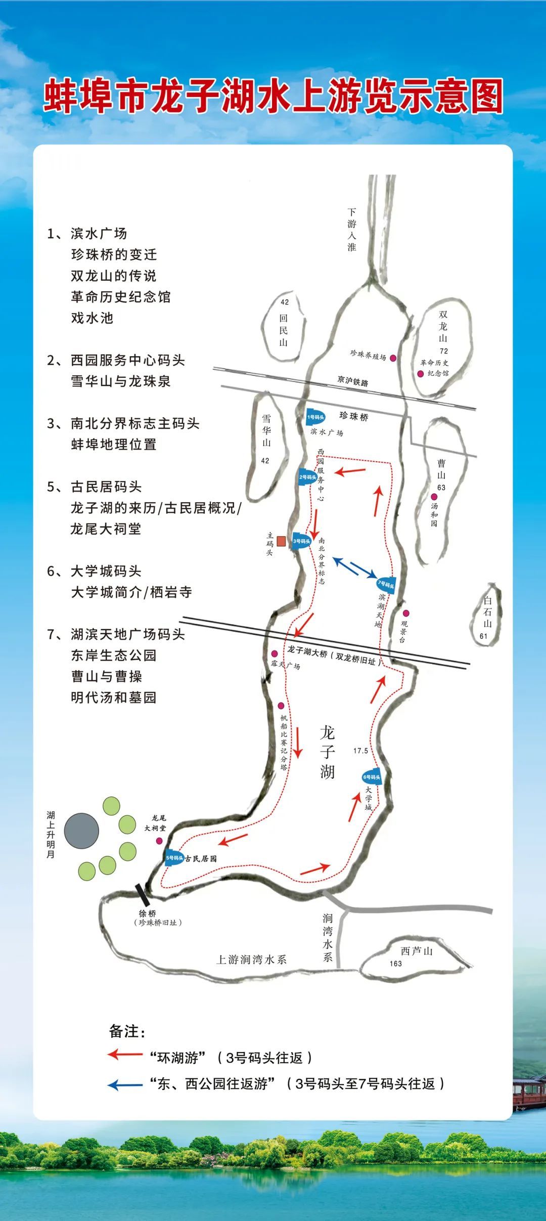 蚌埠新闻网讯 备受市民关注的龙子湖游船项目将于7月1日试运营。6月30日,市文化发展集团有限责任公司正式公布龙子湖游船项目票价方案、游船线路和试运营时间。