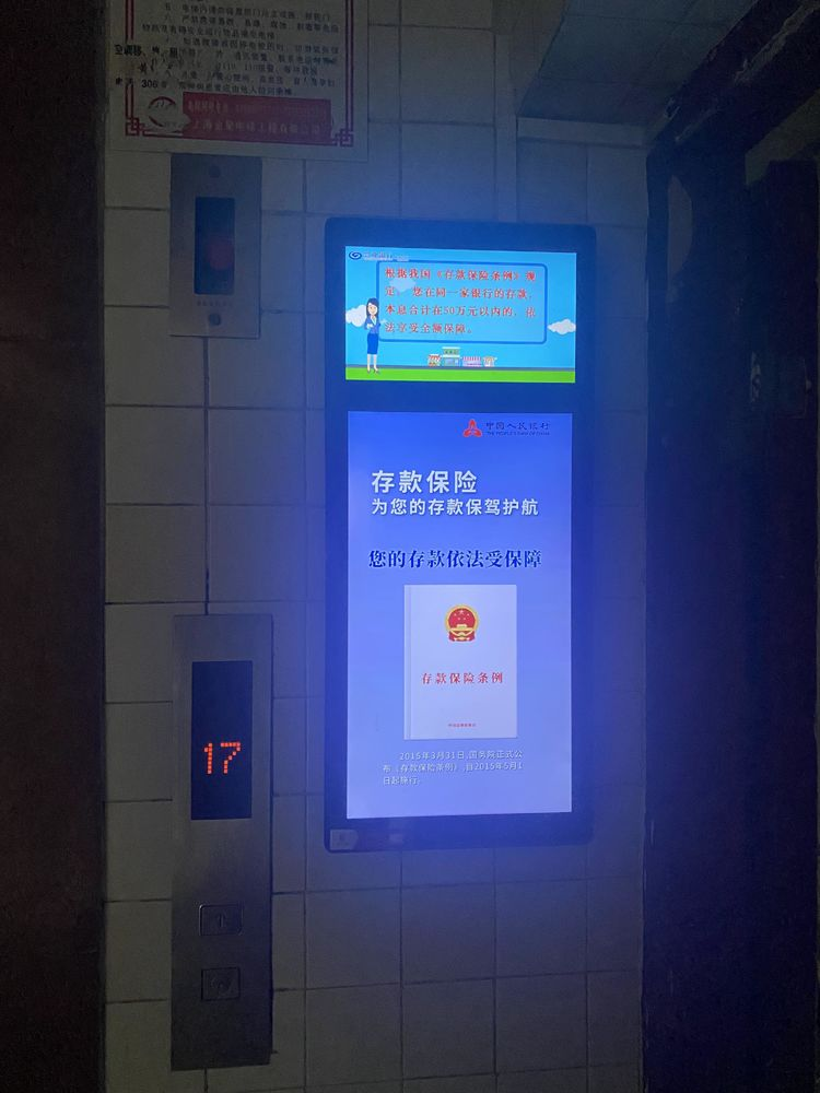 为扩大存款保险宣传覆盖面,该行通过在小区电梯视屏播放存款保险宣传视频,在市区公交站牌布放存款保险宣传广告,供广大市民阅知,进一步提升存款保险的认知。