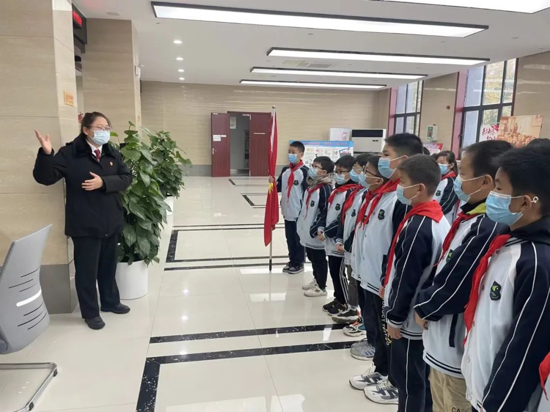 跟随工作人员,同学们首先参观了安徽自贸试验区蚌埠片区法治化营商环境实践基地,了解法院基本情况,观看法院宣传片。在诉讼服务中心,详细了解法院立案、审判、执行等工作流程及法院如何依法、便捷、高效化解纠纷。在十三号法庭,同学们坐上审判台、敲击法槌,近距离感受庭审现场。“公众开放日”活动,让孩子们切身了解了法院工作,感受到法庭的庄严与肃穆,既是一堂生动有趣的法治实践课,又有利于学生们学法、知法、守法、用法,筑牢法治理念,增强自我保护意识。