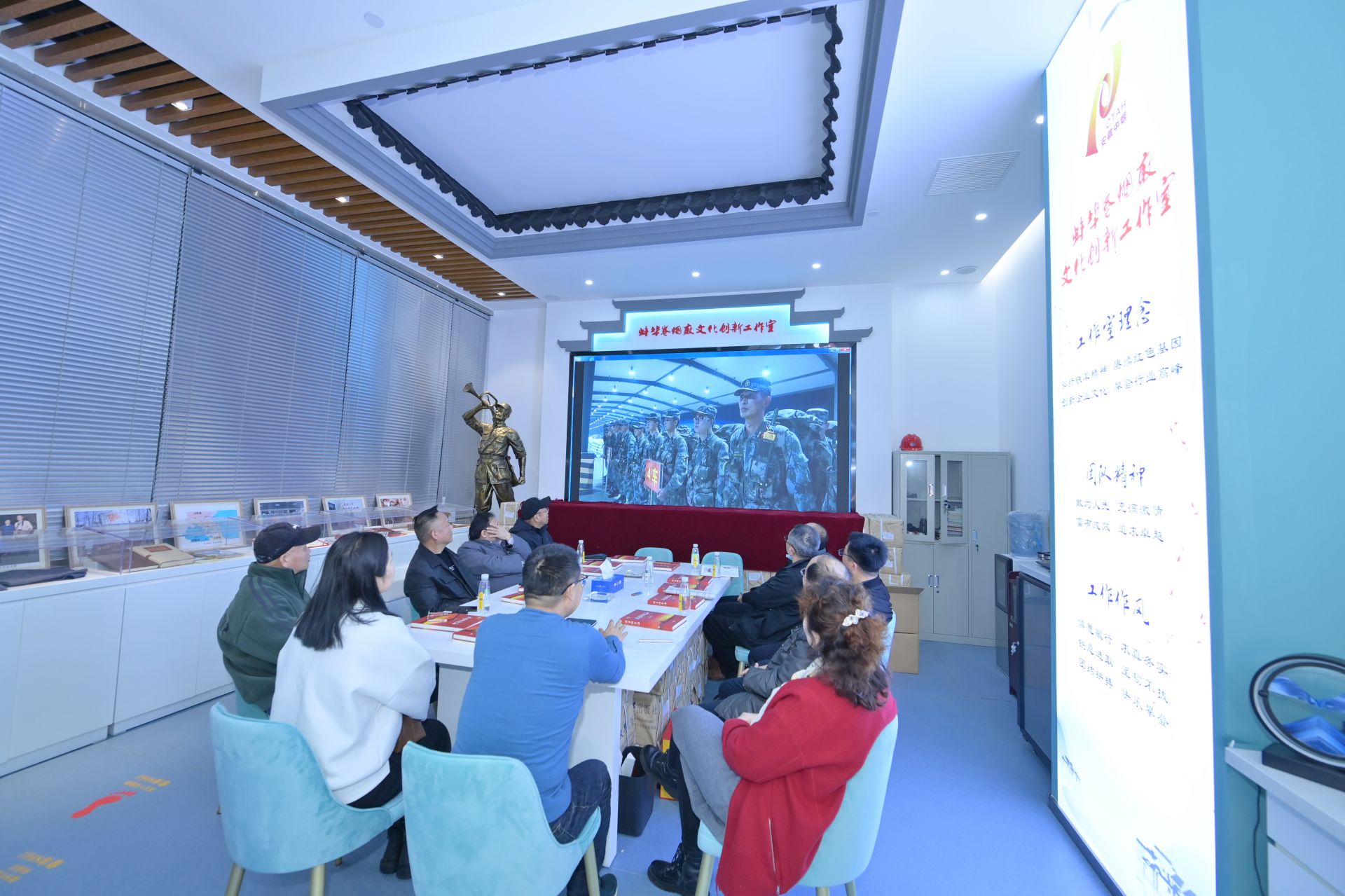 文化创新工作室张冰、孙景凤、于翔等工作室成员对来宾们给予企业文化建设的好评表示感谢。张冰说:要想文化能够有所创新,就不能只在自己的一亩三分地上耕耘,尤其是文化创新,绝不能固步自封,更不能画地为牢,而是应该走出去请进来,通过思想的碰撞,艺术的交融,启迪创新的火花,才能取得新的突破和新的创新研究成果,并希望与有关部门和文艺界保持良好的合作关系。张冰表示,通过多方开展文化交流合作,对文化创新工作室下一步尝试把蚌埠卷烟厂建设成具有深厚文化底蕴和独具特色的红色工厂、书香蚌烟、人文企业具有十分有益的探索和示范价值。