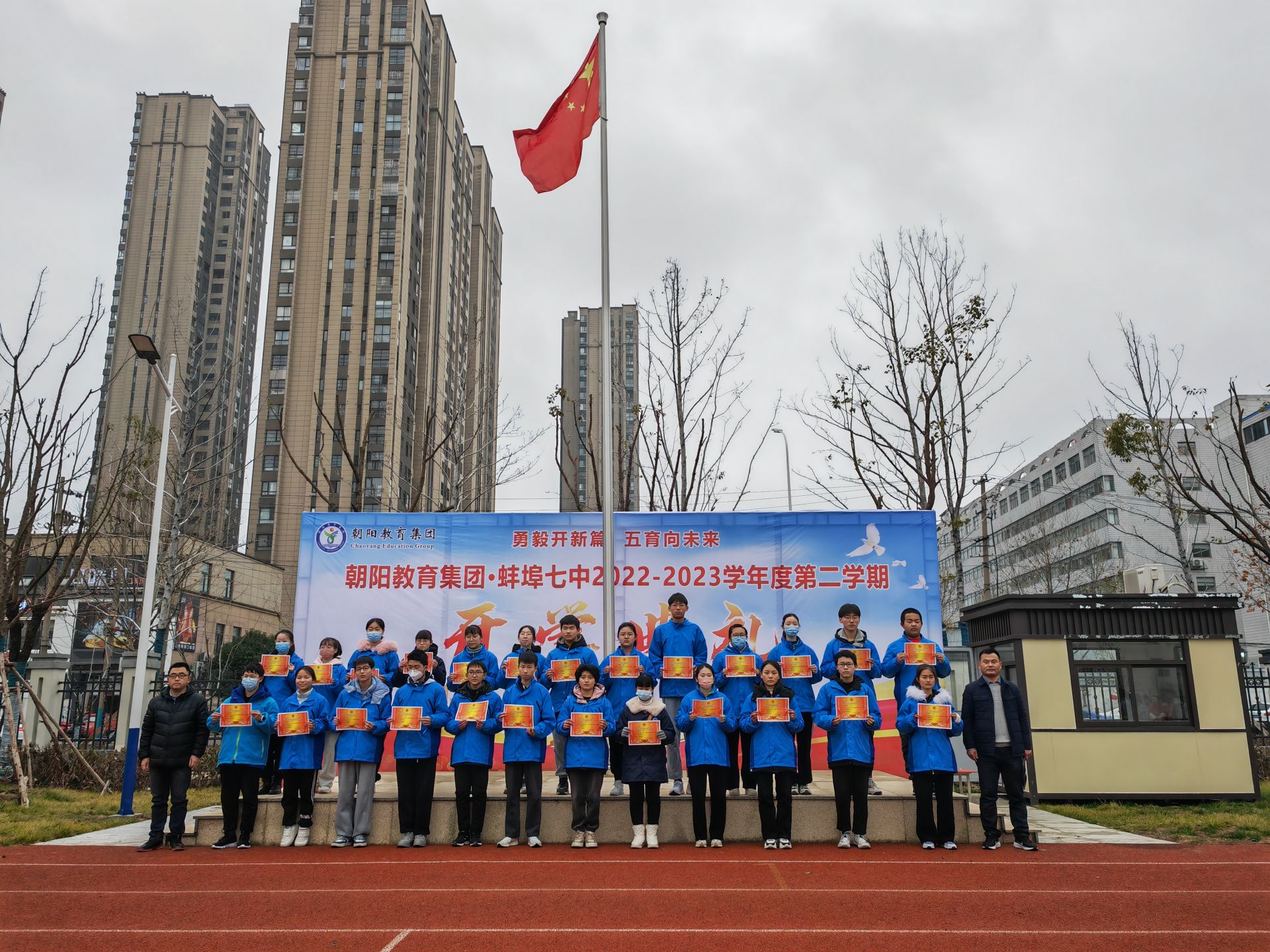 杨柳初新、辛夷带春。2023年2月10日上午,蚌埠七中全校师生于料峭春寒中,相聚昂扬向上的校园,用春季开学典礼的精彩时刻,开启朝阳教育集团·蚌埠七中新的篇章。