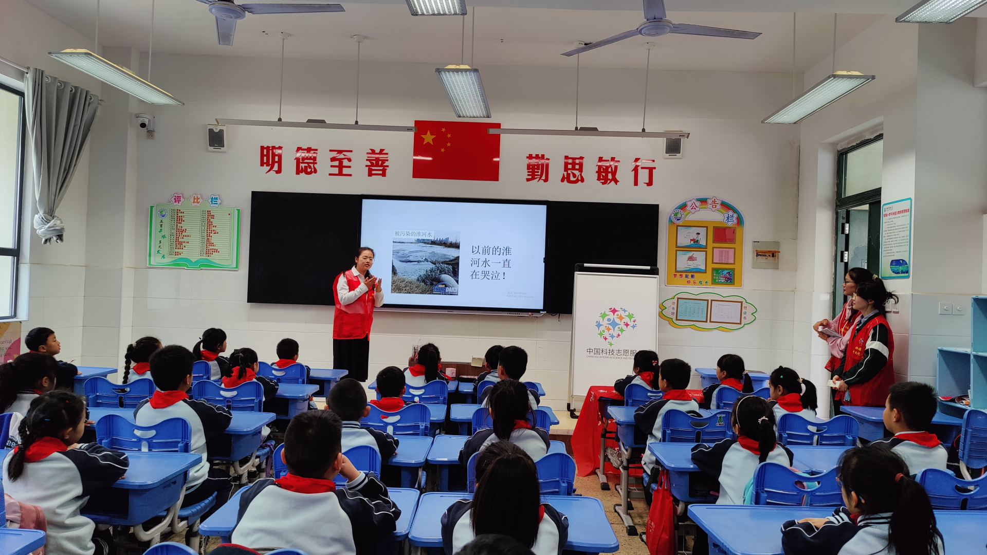 捐赠仪式后,大学生志愿者就淮河文化及生态保护做了现场宣讲。