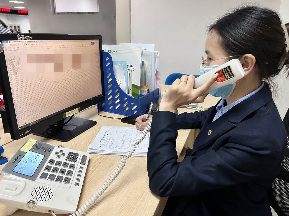 图:工作人员通过电话回访与失能人员家属交流护理情况